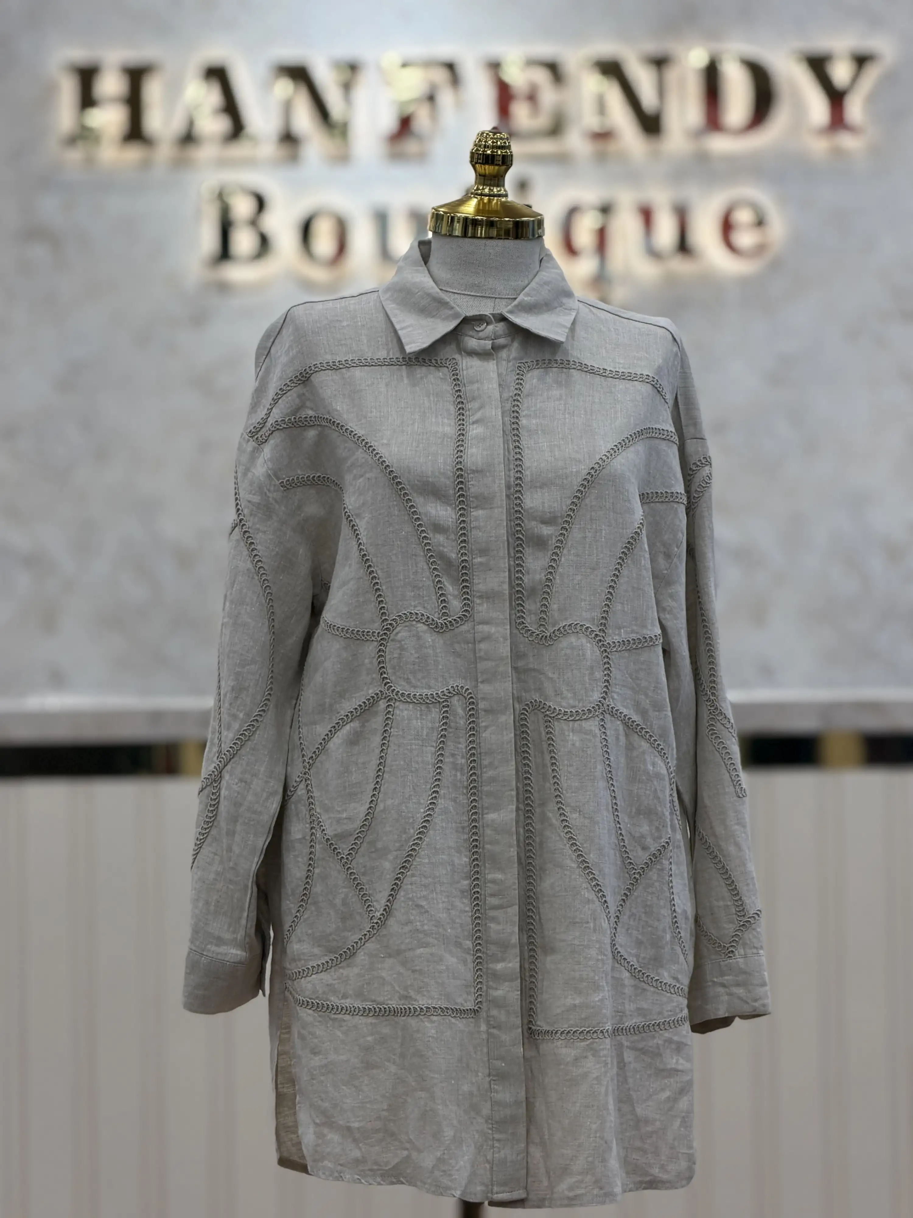 • Fuat Gürşen markalı bej renk tesettür tunik, keten kumaşıyla şıklığı ve rahatlığı bir araya getiriyor.