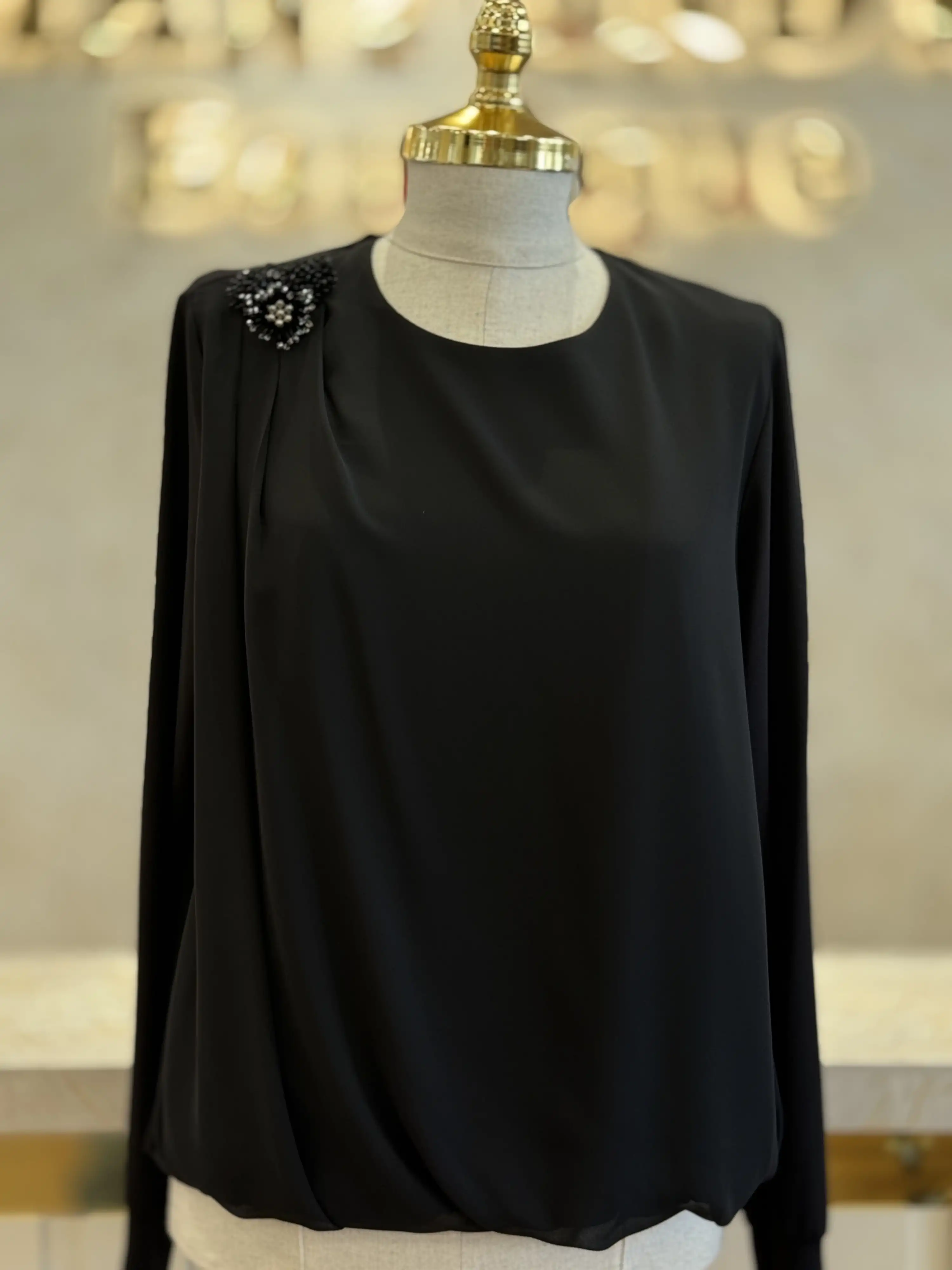 Tesettürlü kadınların şıklığını tamamlayacak Fuat Gürşen siyah renk tunik, her tarza uyum sağlar. İster günlük kullanım için, ister özel davetlerde tercih edebileceğiniz bu tunik ile kendinizi her zaman şık hissedeceksiniz. Yüksek kaliteli kumaşı sayesinde konforlu bir gün geçirmenizi sağlar.