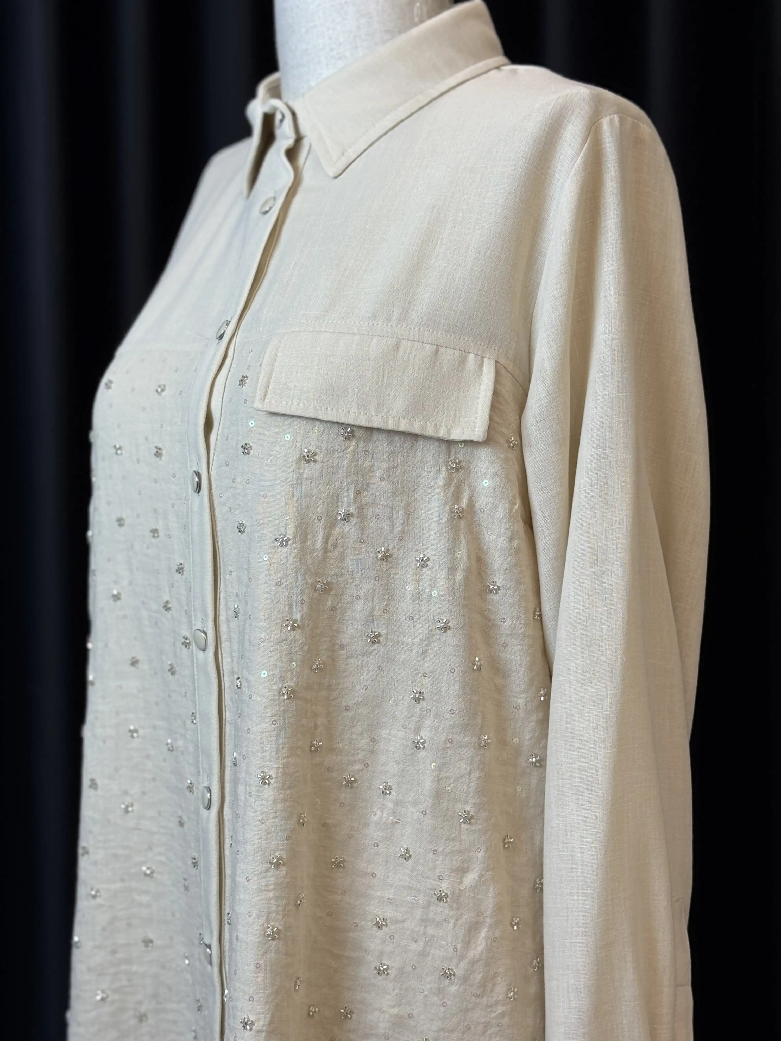 • Fuat Gürşen Bej Renk Keten Tunik, şıklığı ve rahatlığı bir arada sunar.