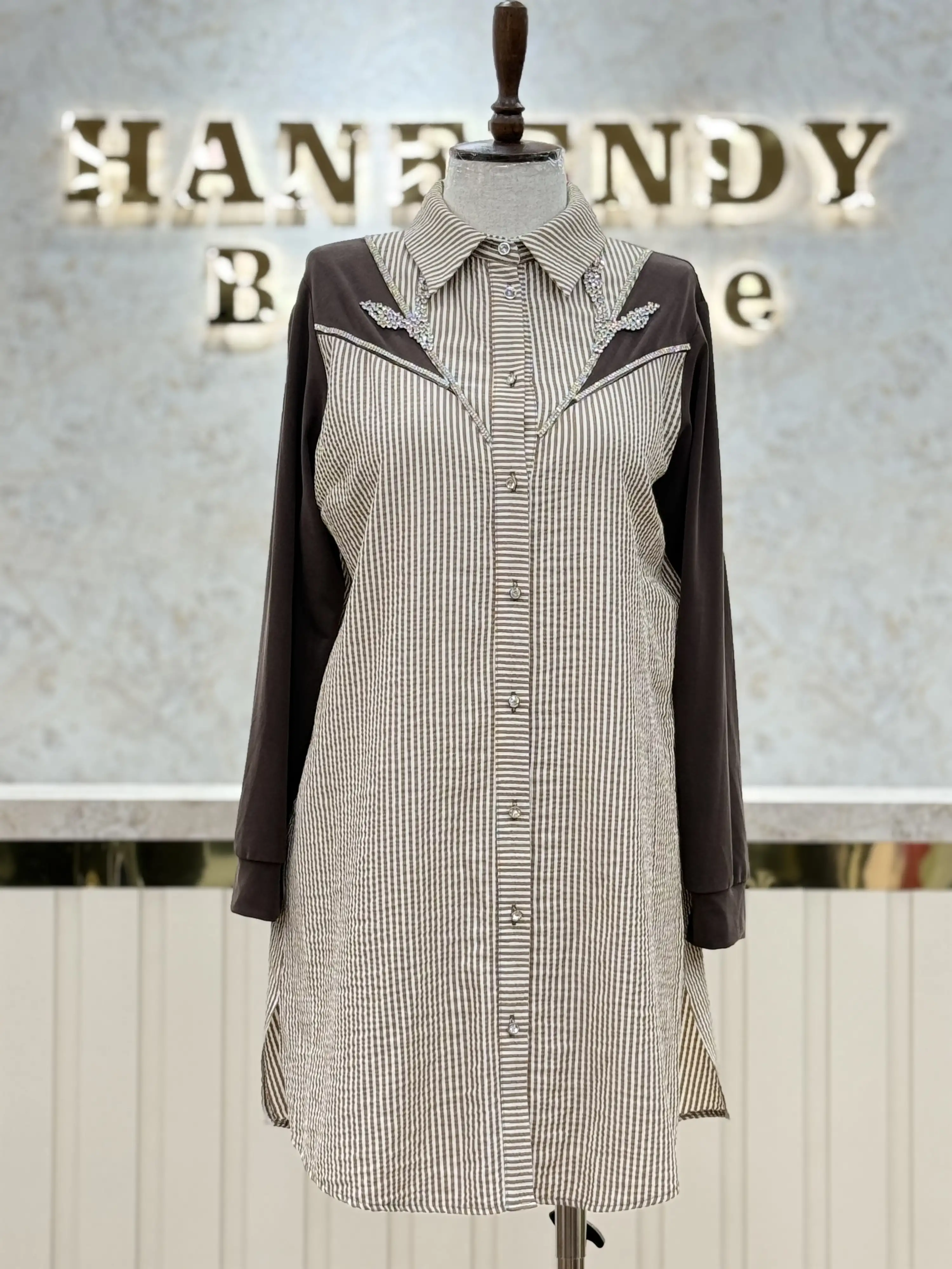 - Kahve rengi tunik, her tarza uyum sağlayacak şık bir seçenektir.