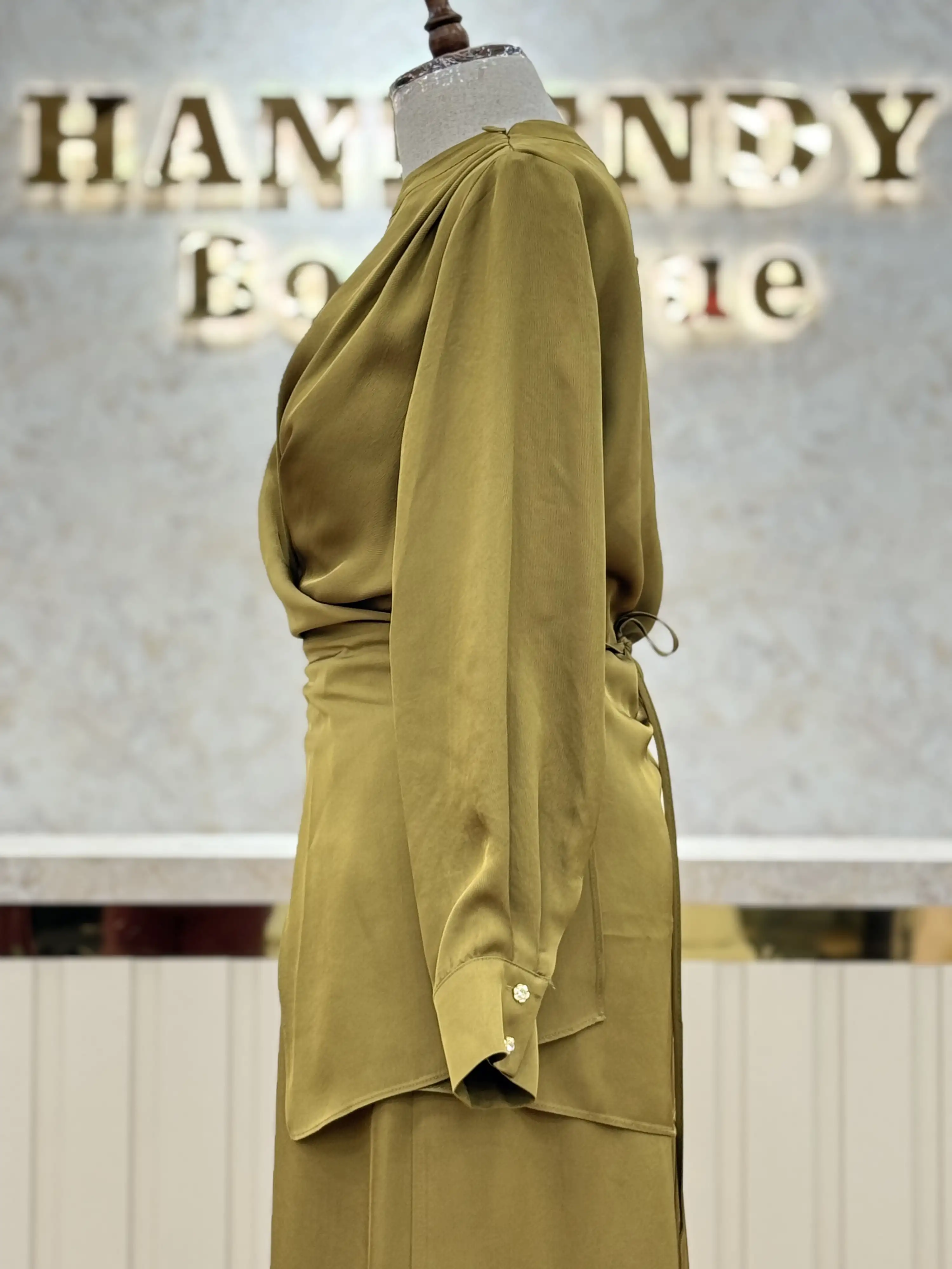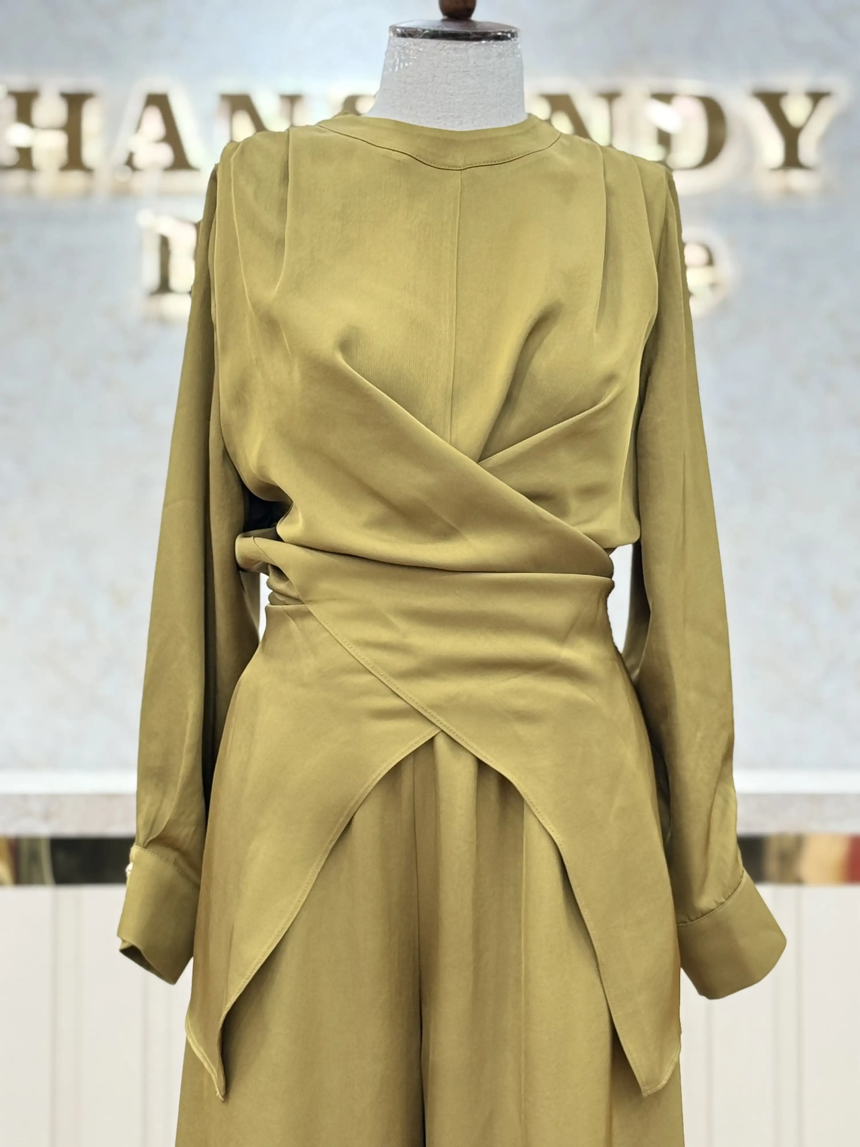 • Ghisa'nın şık yağ yeşili renk takımı, tesettür giyimde zarif ve modern bir seçenektir.