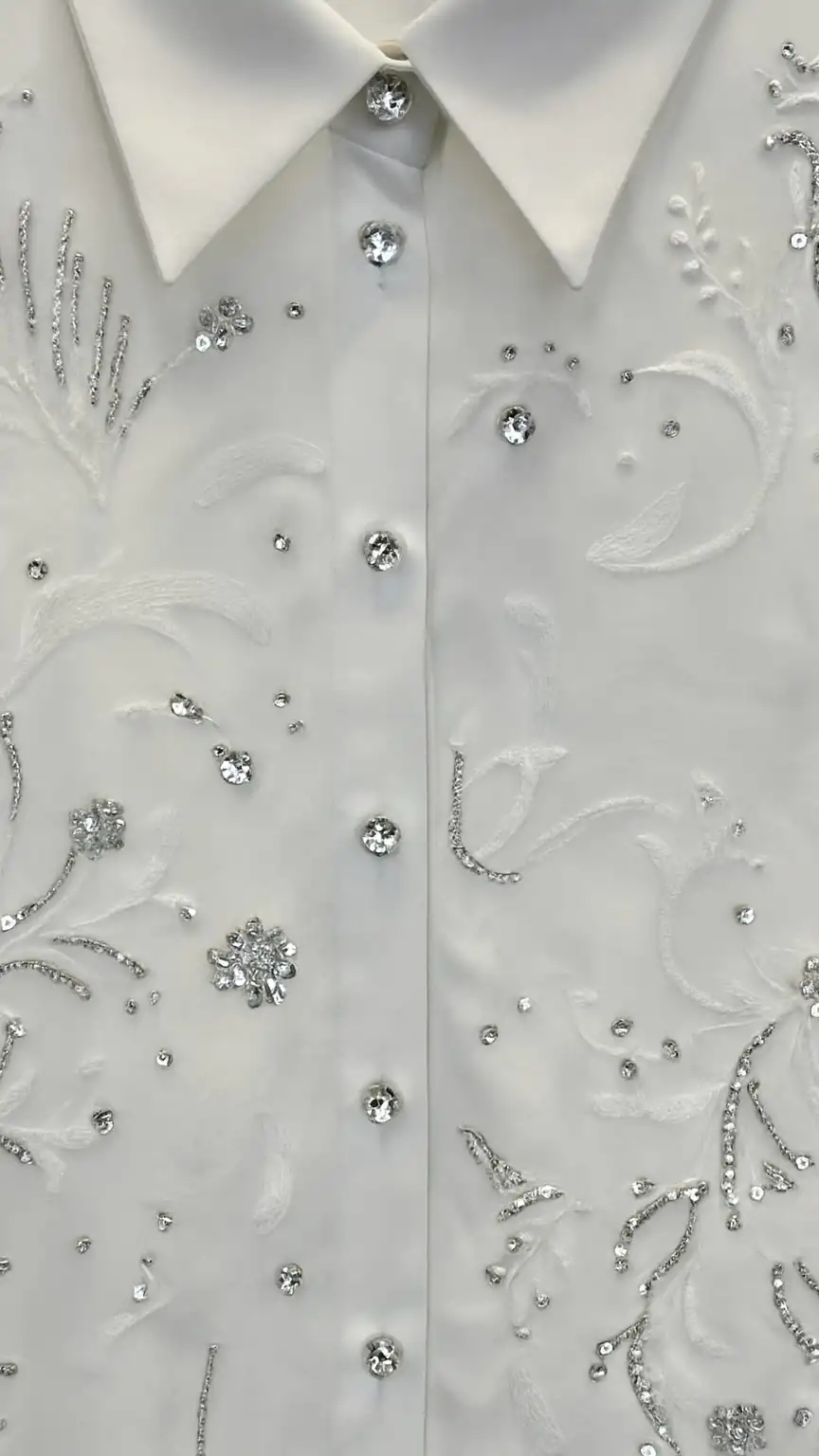 • Şık görünümüyle öne çıkan MY Ekru Renk Önü Pullu Gömlek, tarzınıza zarif bir dokunuş katıyor.