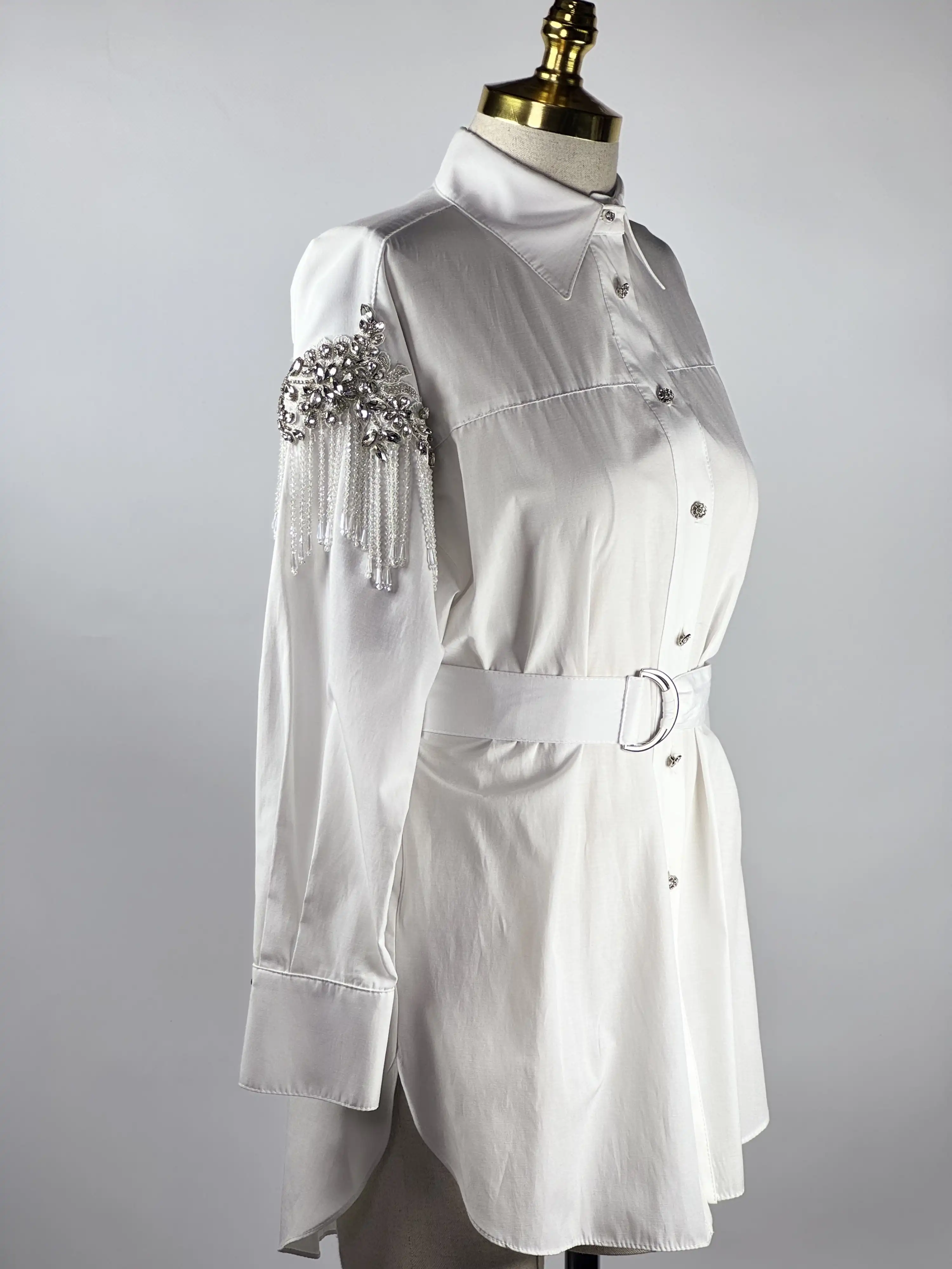 My312 Ekru kolları işlemeli tunik