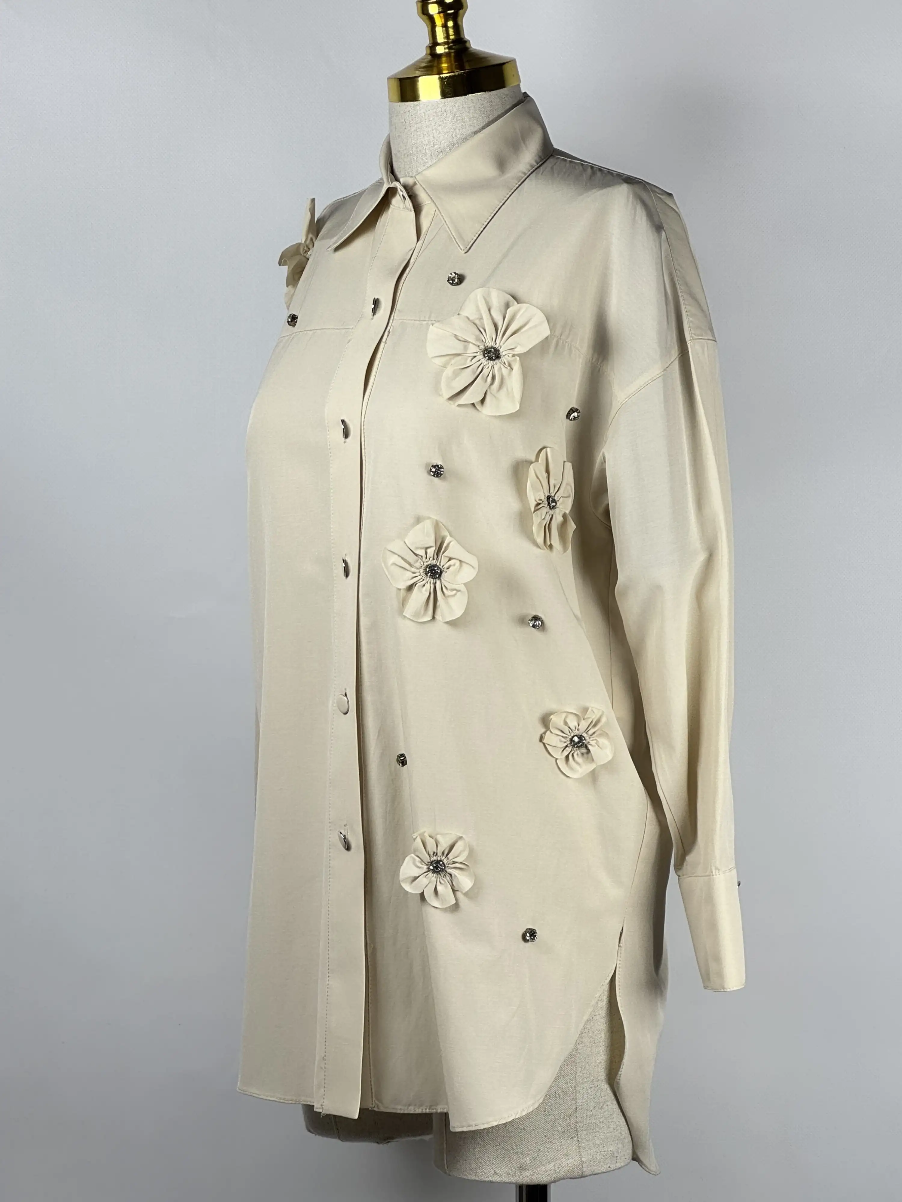 MY312 Bej Çiçek Detaylı Gömlek