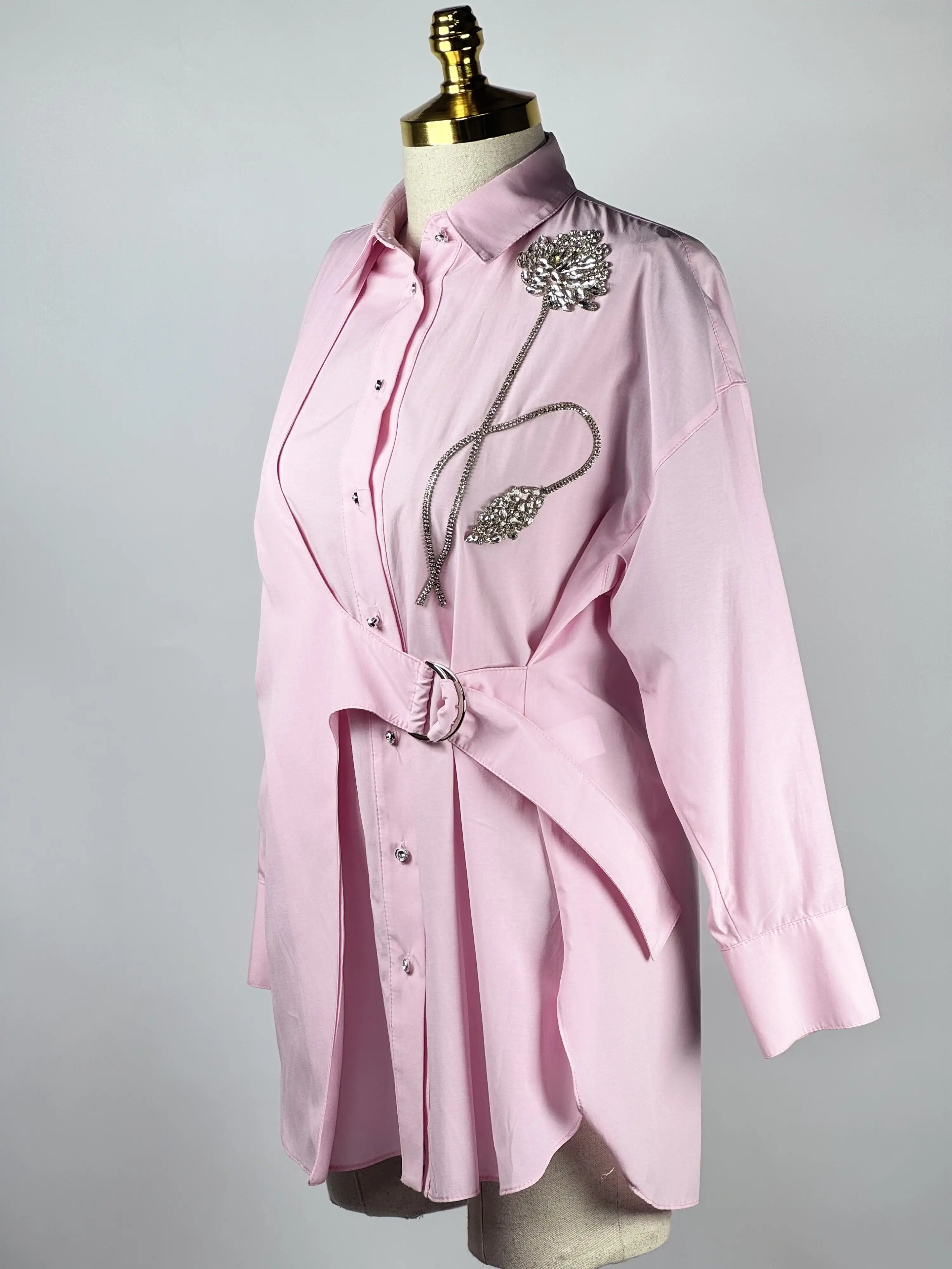• Bir dokunuşta zarafet: MY312 Pudra Renk Çiçek Detaylı Gömlek.