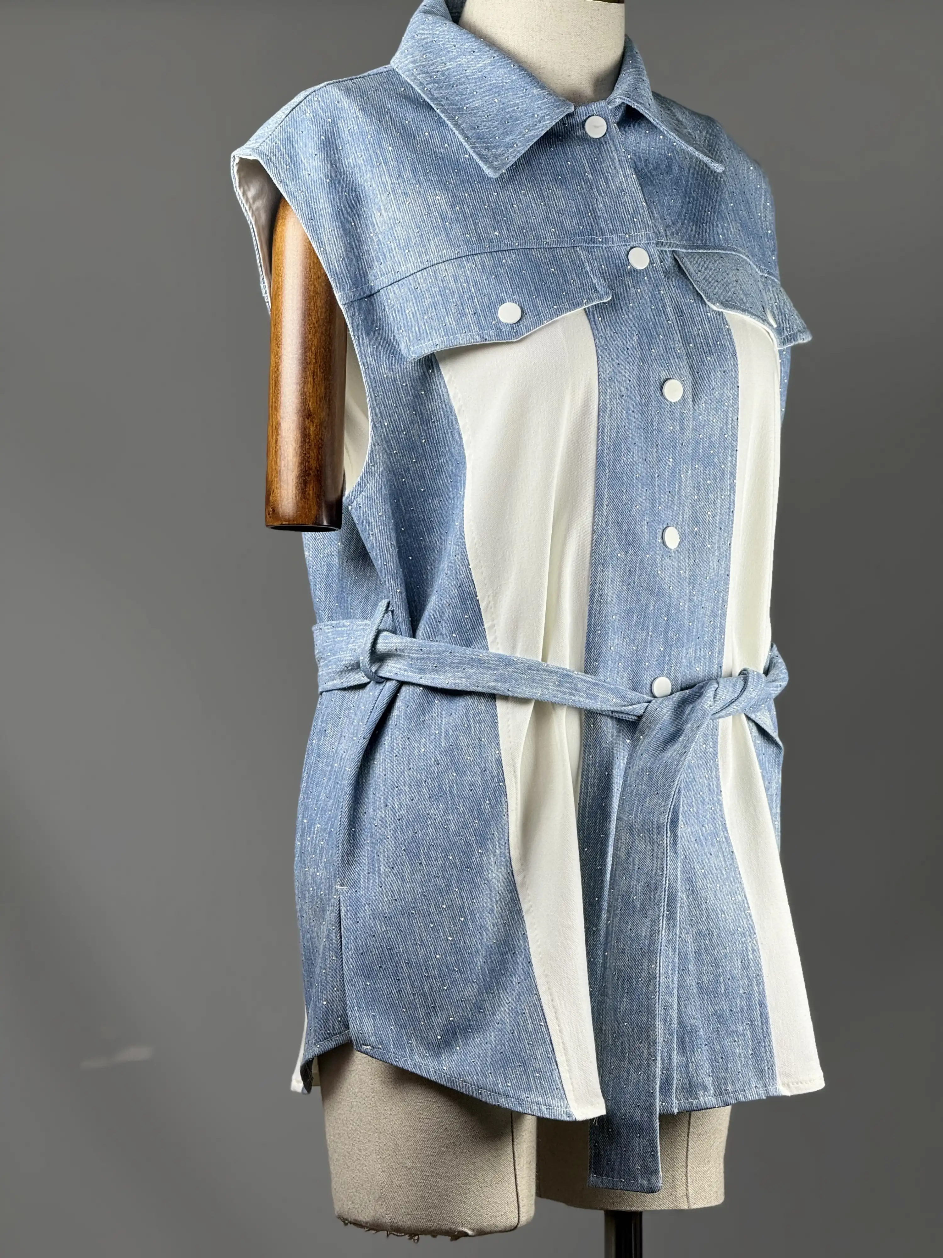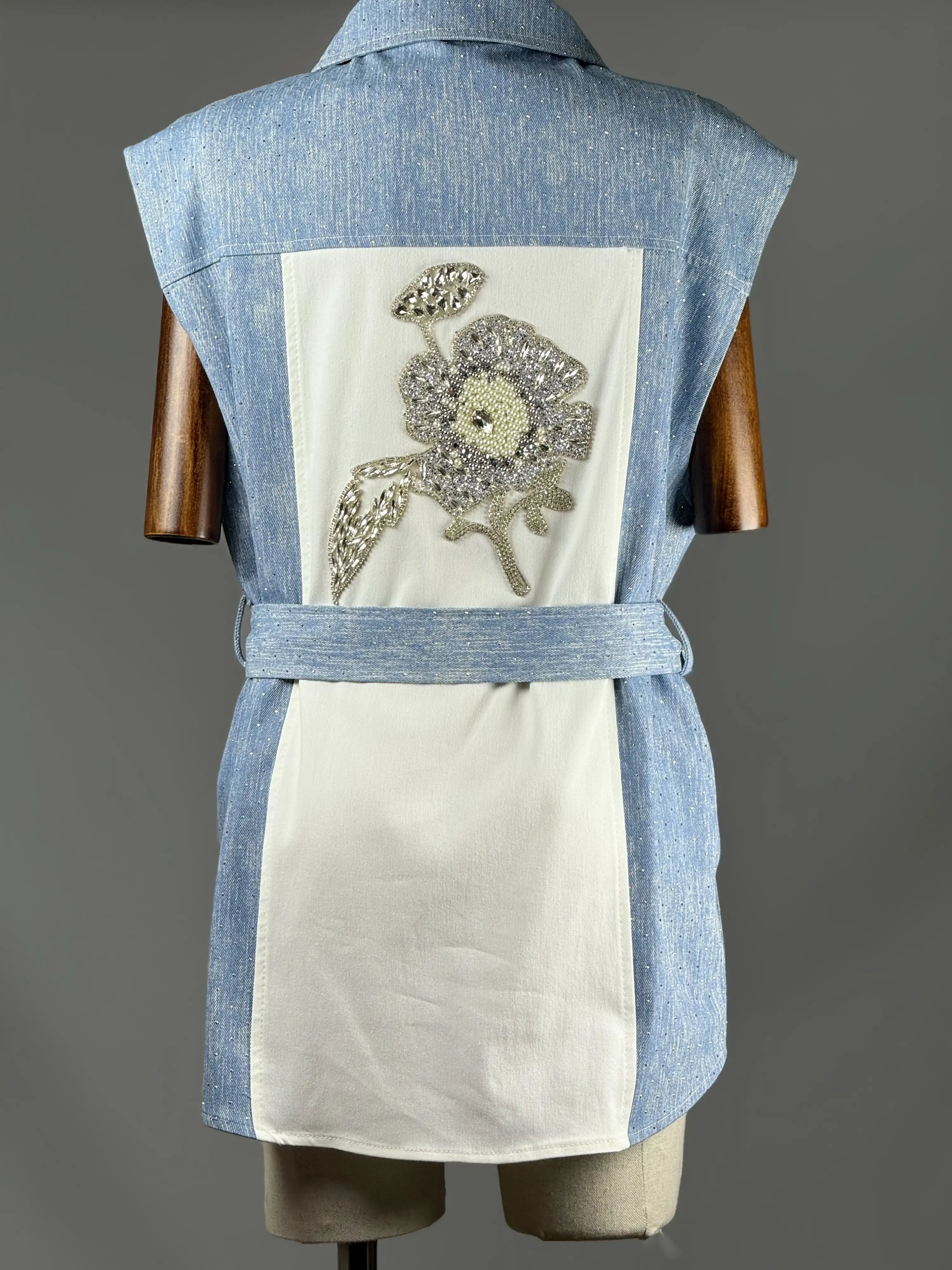 MY312 MY-25S9900-E Ekru Arkası Taşlı Yelek