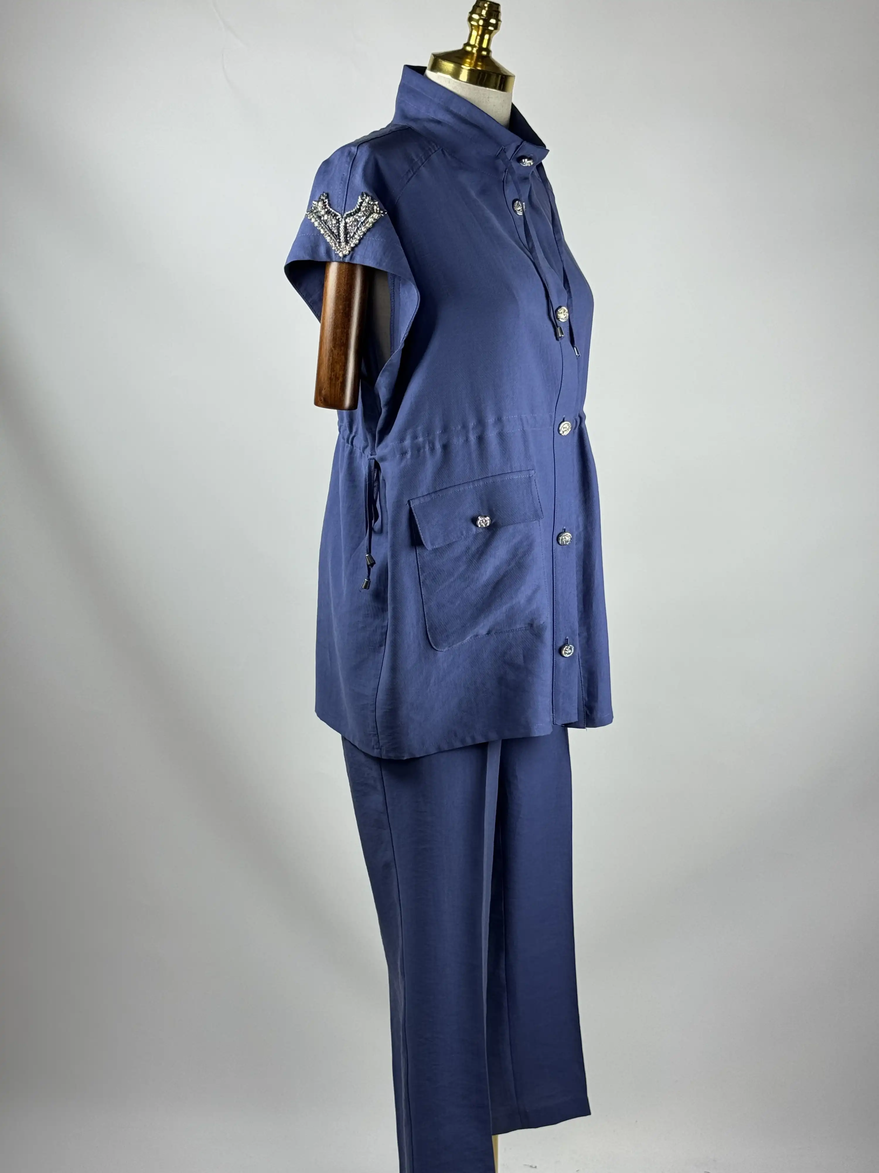 MY312 İndigo Renk Omzu Taşlı Takım ile tarzınızı yansıtın, şıklığı yakalayın!