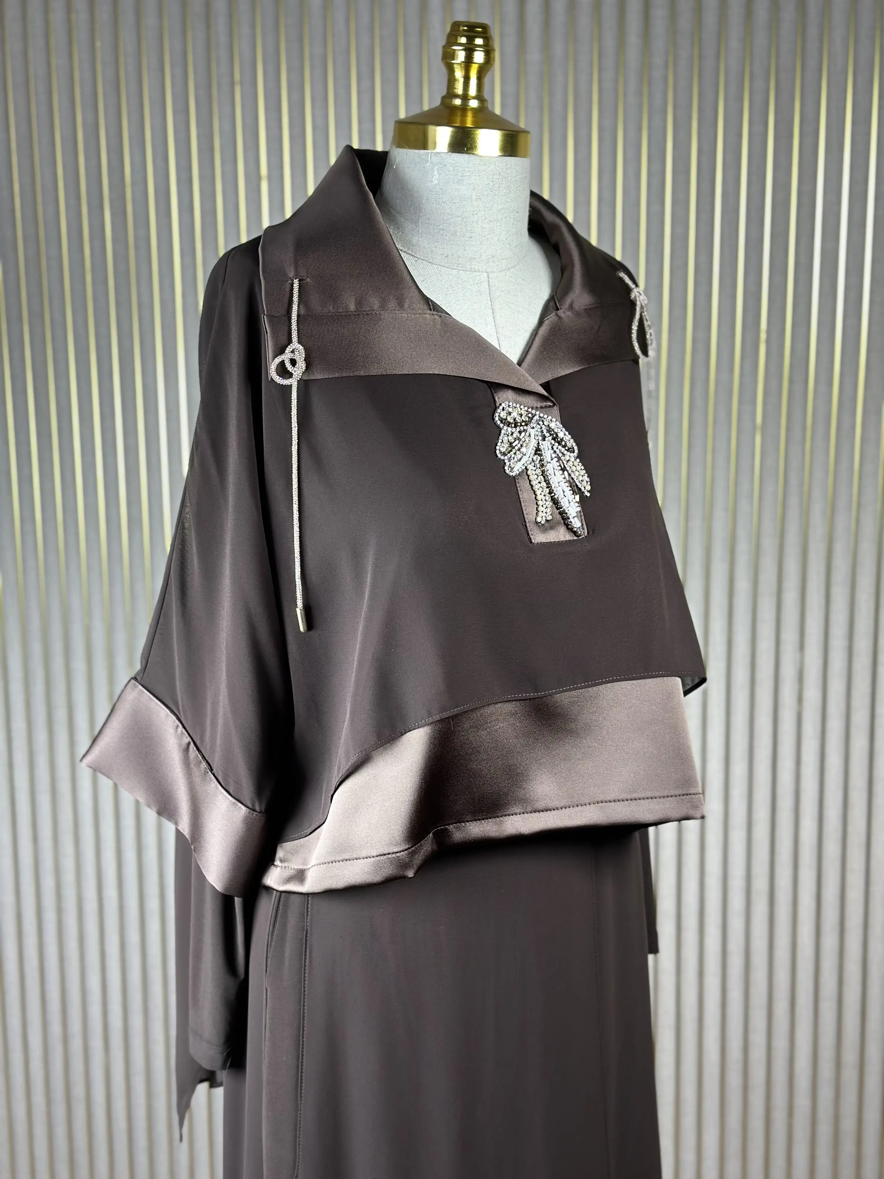 MY312 Kahve Renk Önü Taşlı Şifonlu Takım