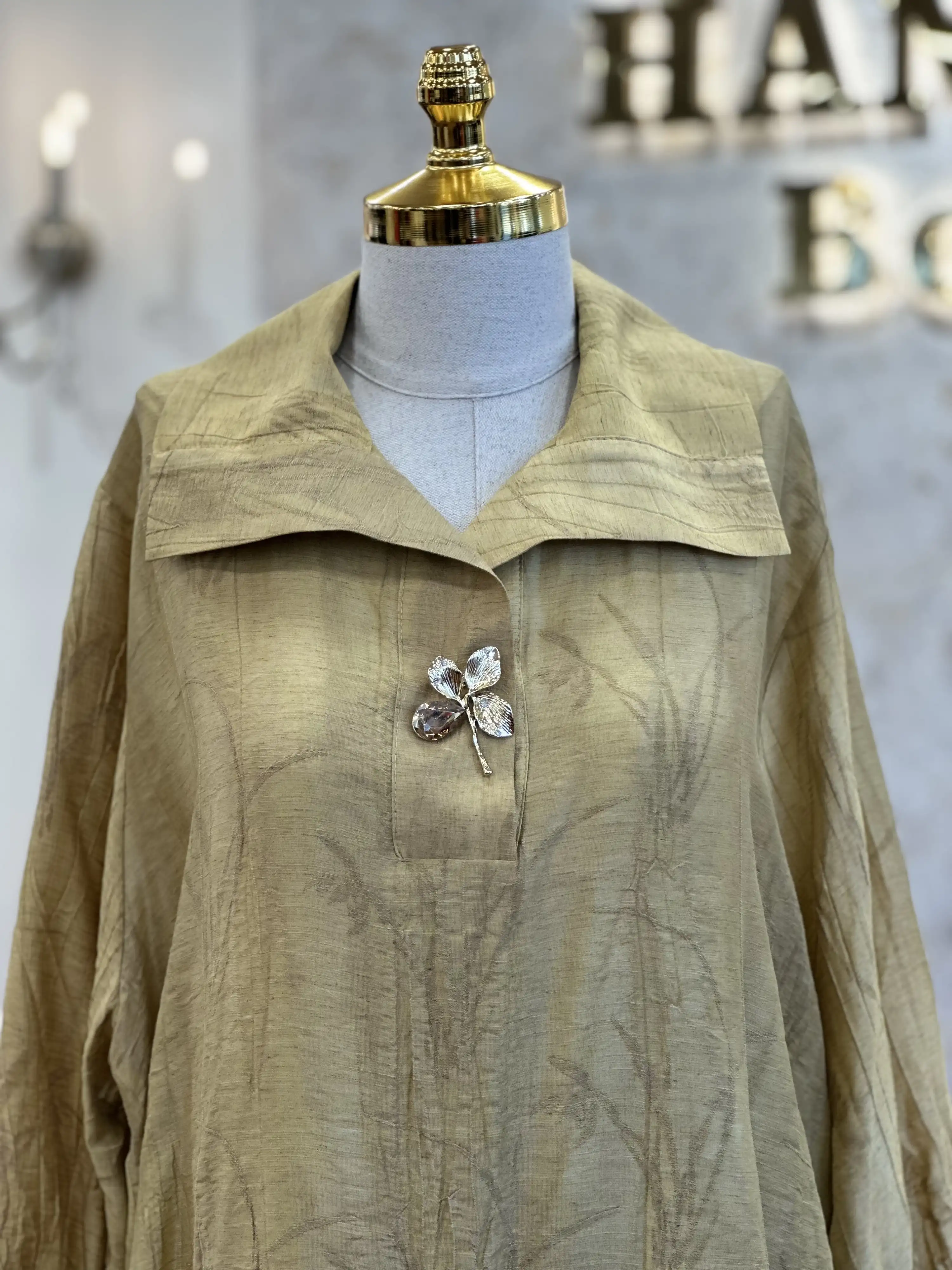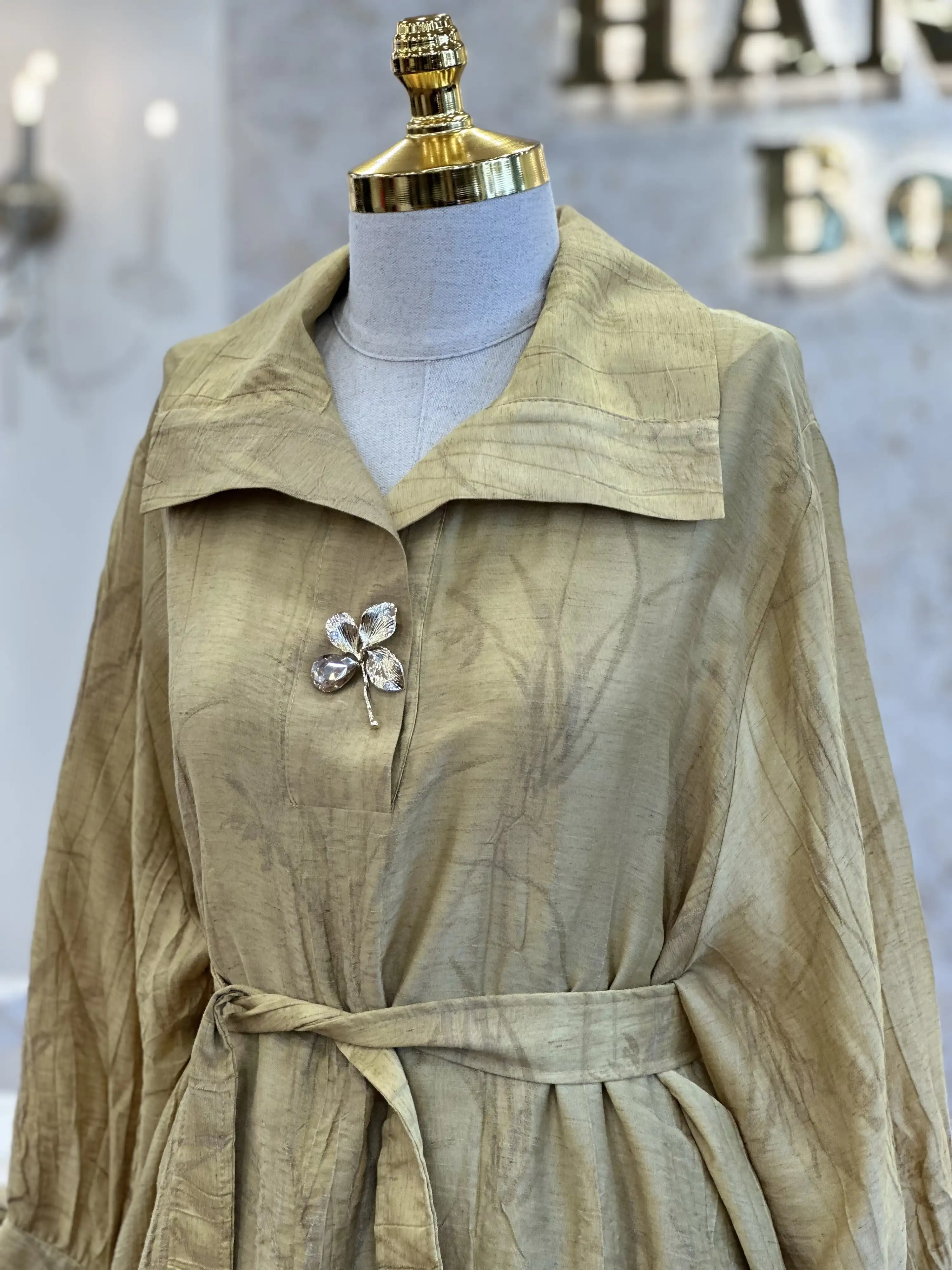 Tesettür giyimde tarzınızı yansıtmak ve kendinizi özgün hissetmek istiyorsanız MY312 Olive Renk Önü Aksesuarlı Takım tam size göre!