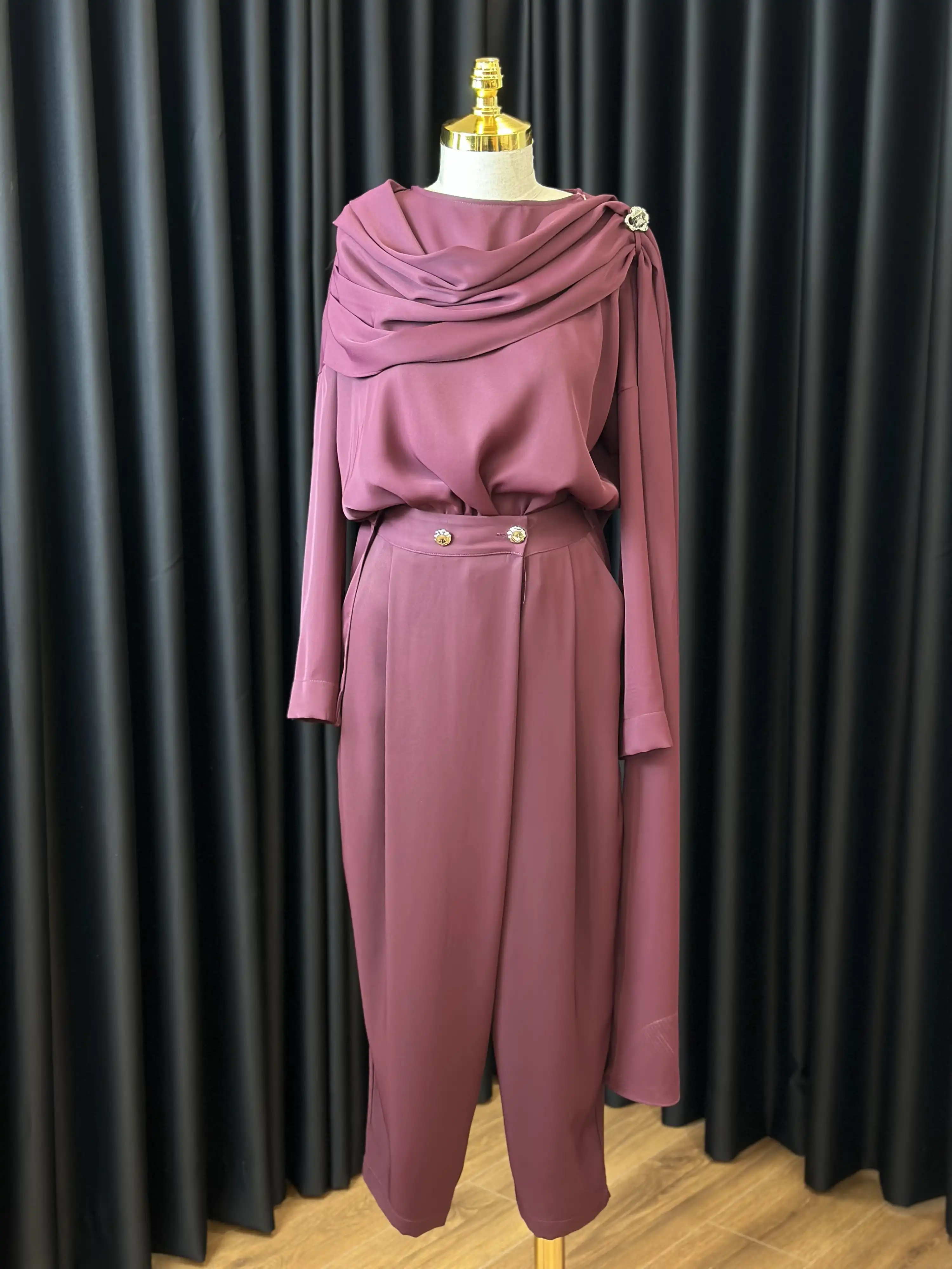 Bu şık takım ile her ortamda kendinizi özel hissedecek ve tarzınızı en iyi şekilde yansıtabileceksiniz. MY312 Mürdüm Renk Omuz Aksesuarlı Takım, stilinizi tamamlayacak mükemmel bir seçenek!