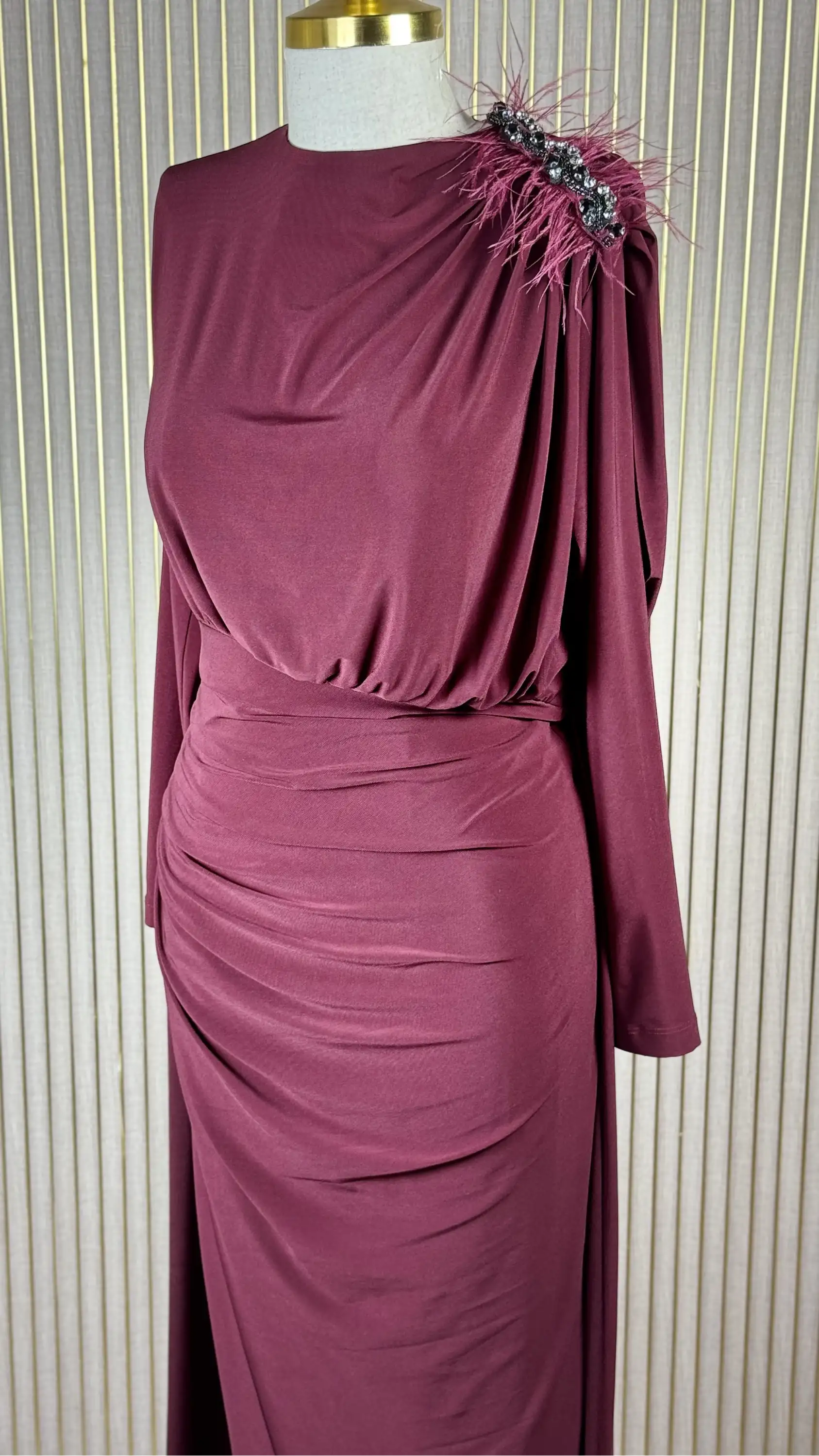• my312 Bordo Renk Omuzu Aksesuarlı Elbise - Şıklığınızı ve tarzınızı ön plana çıkaracak bir seçim!