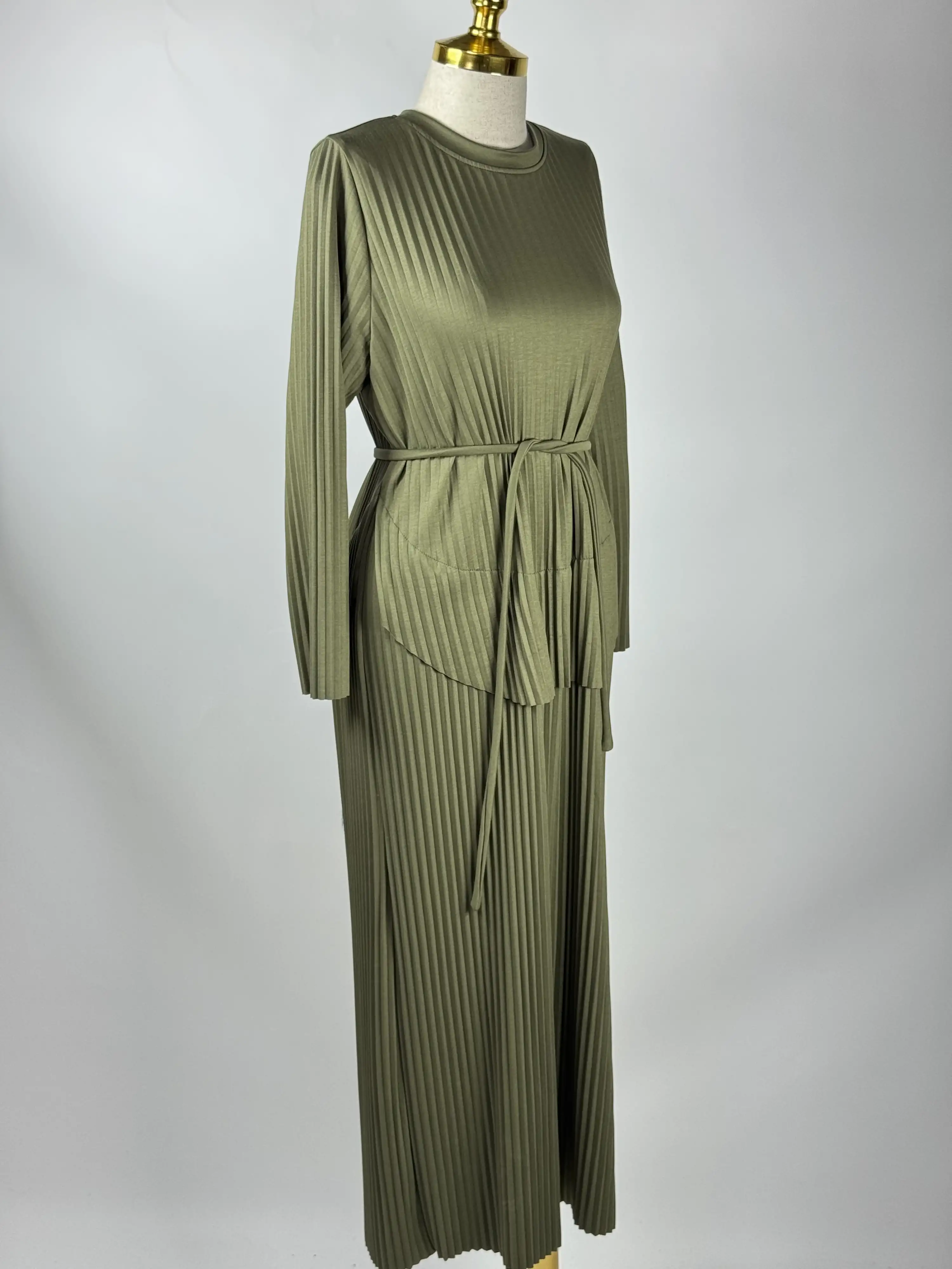 • my312 Haki Renk Piliseli Elbise, şıklığı ve rahatlığı bir arada sunan kadınların favorisi.