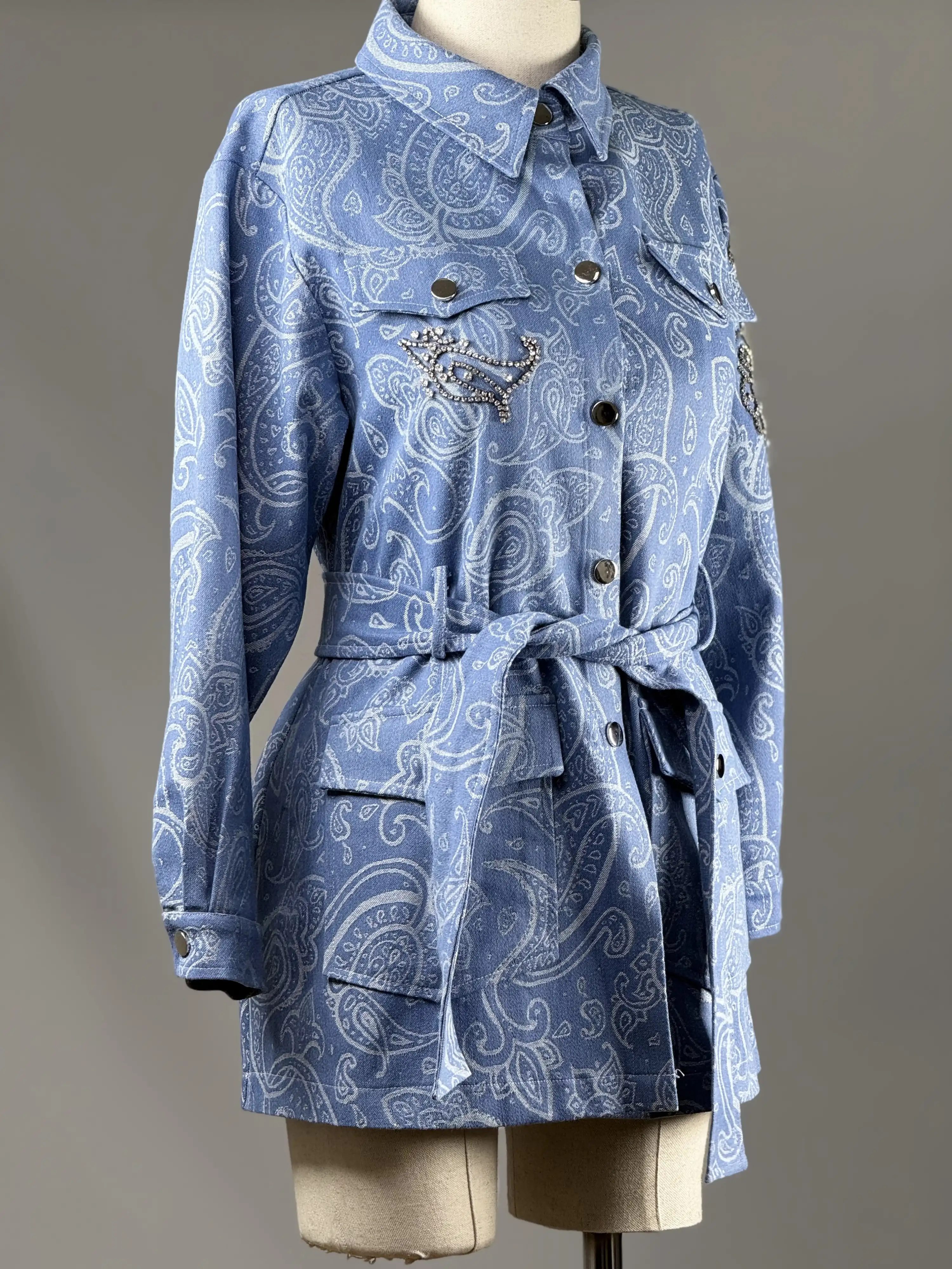 Birbirinden şık ve trend görünüme sahip olmak isteyenler için ideal bir seçenek olan MY312 Mavi Renk Kolu Taşlı Denim Ceket, tarzınızı yansıtmanızı sağlayacak.