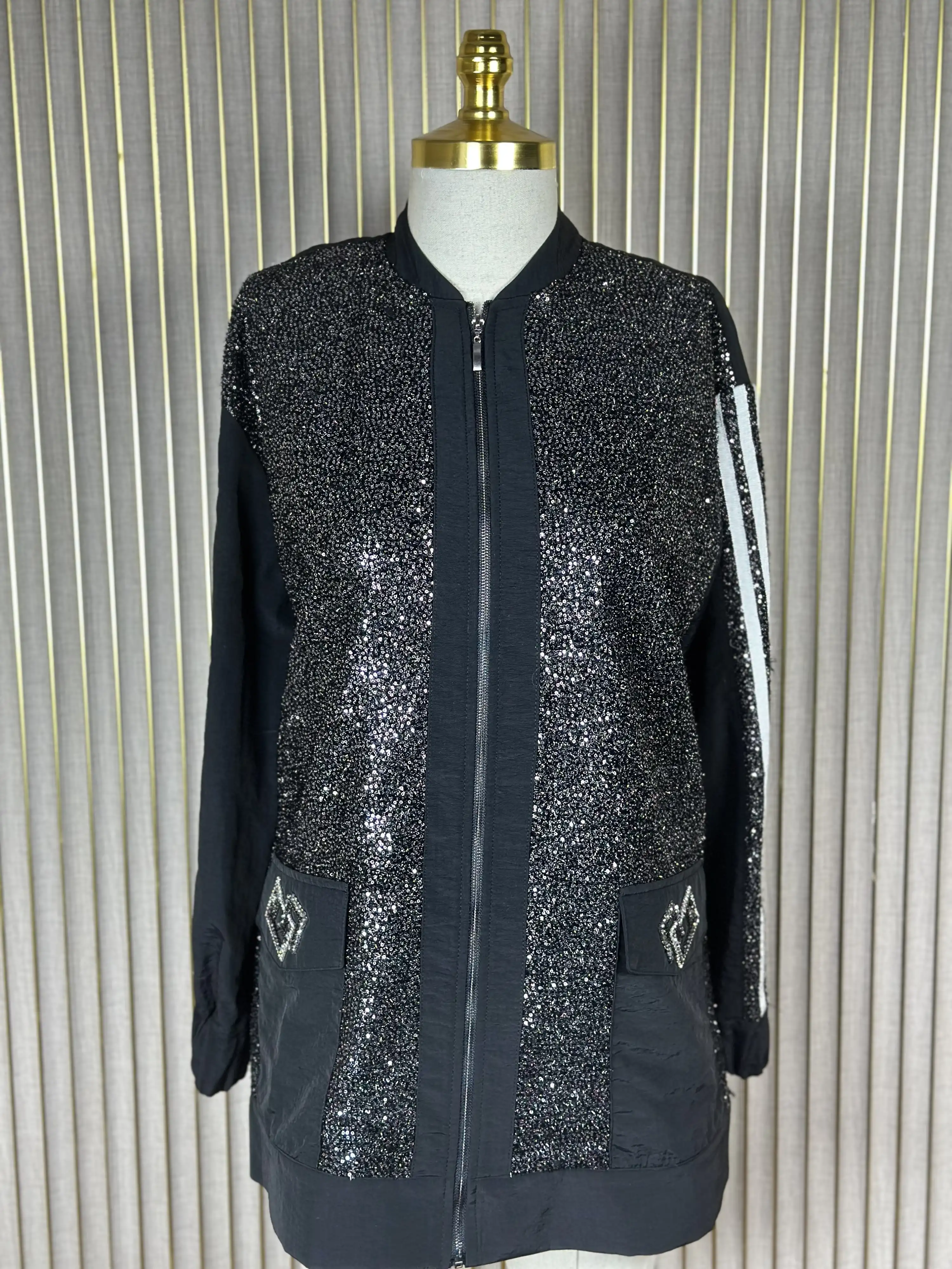 MY312 Siyah Renk Arkası Taşlı Bomber Ceket ile tarzınızı konuşturun, her kombininizde şıklığı yakalayın!