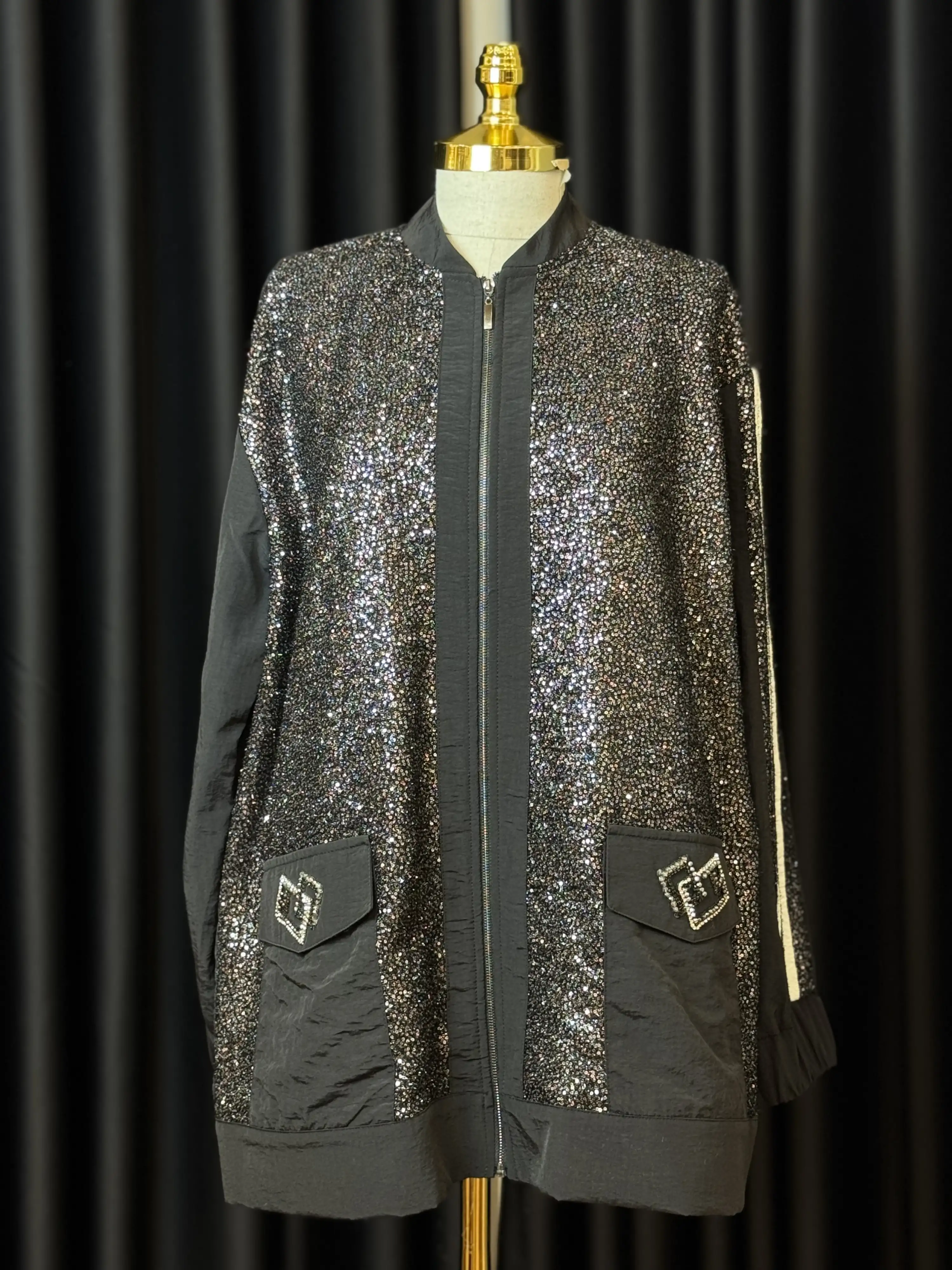 Şıklık ve rahatlık arayanların tercihi olan MY312 Siyah Renk Arkası Taşlı Bomber Ceket, tarzınızı yansıtacak harika bir seçenektir.