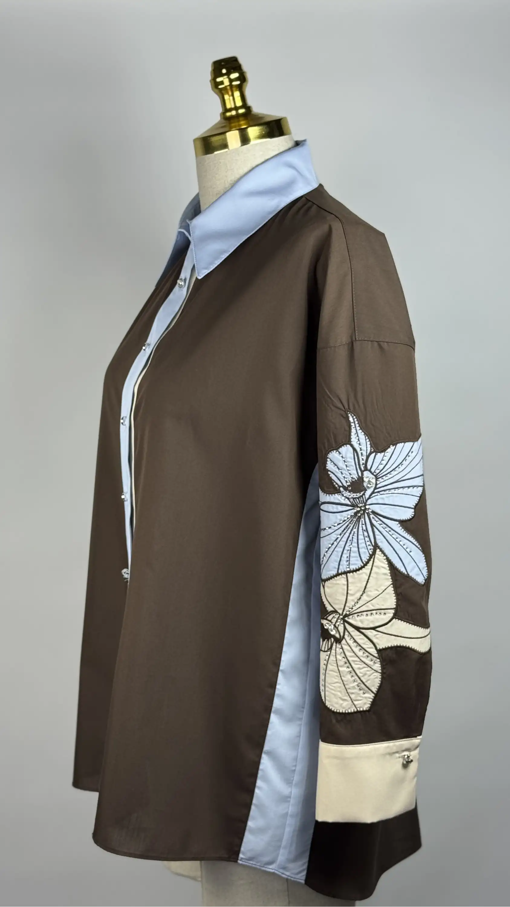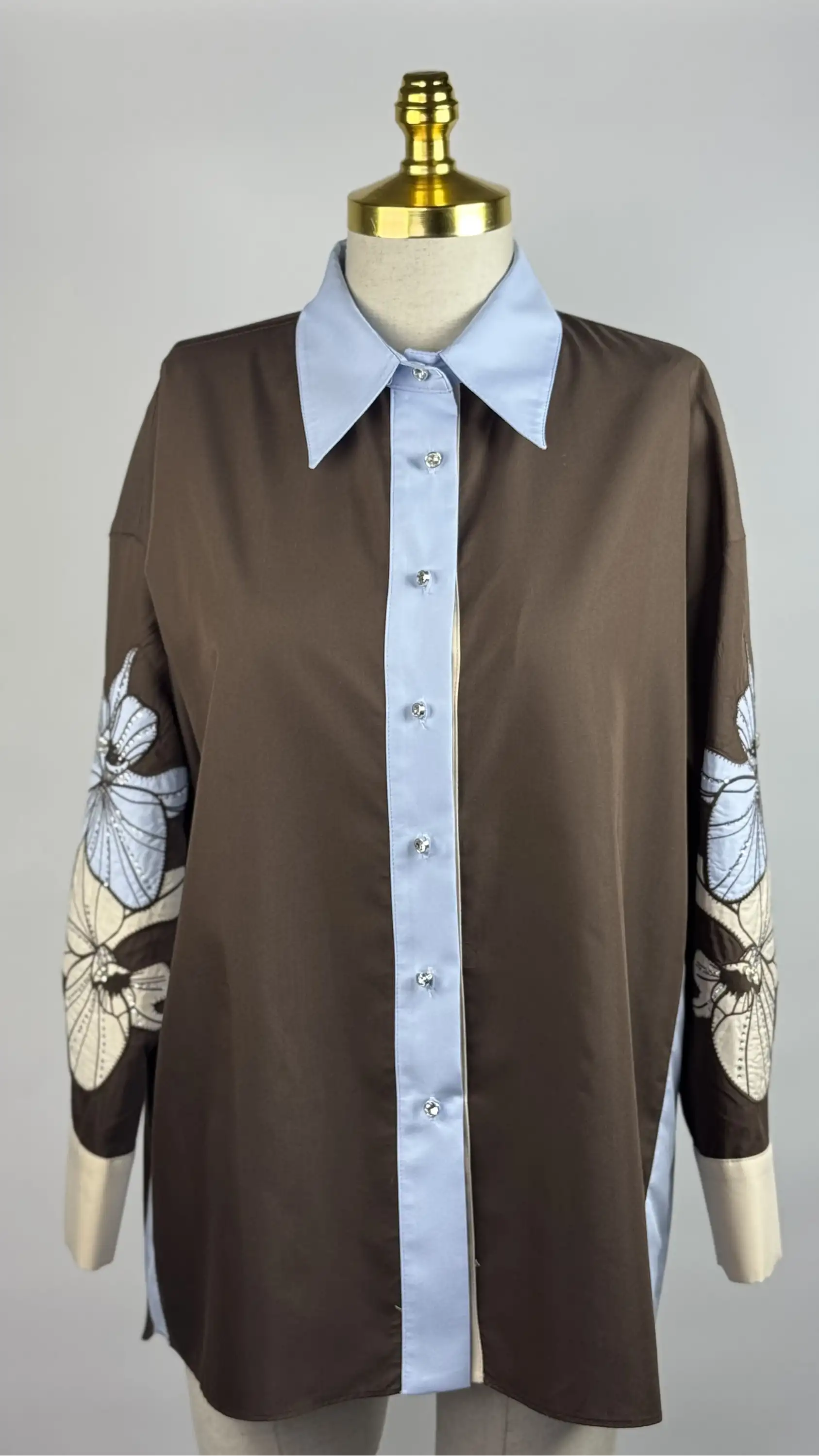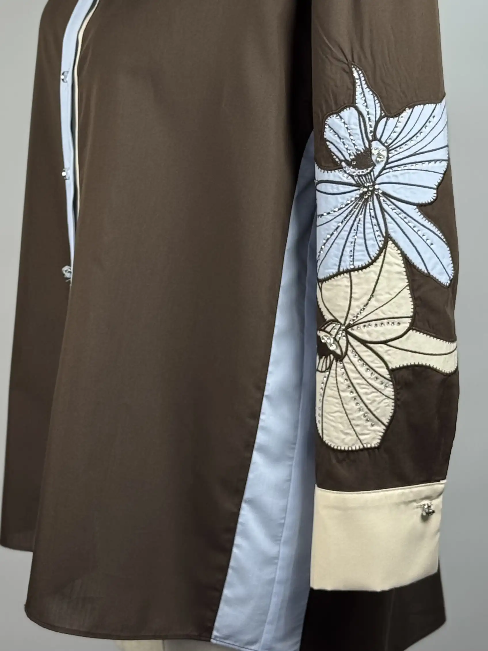 MY312 Kahve Renk Kolları Nakışlı Taşlı Elbise, şıklık ve zarafeti bir araya getiriyor.