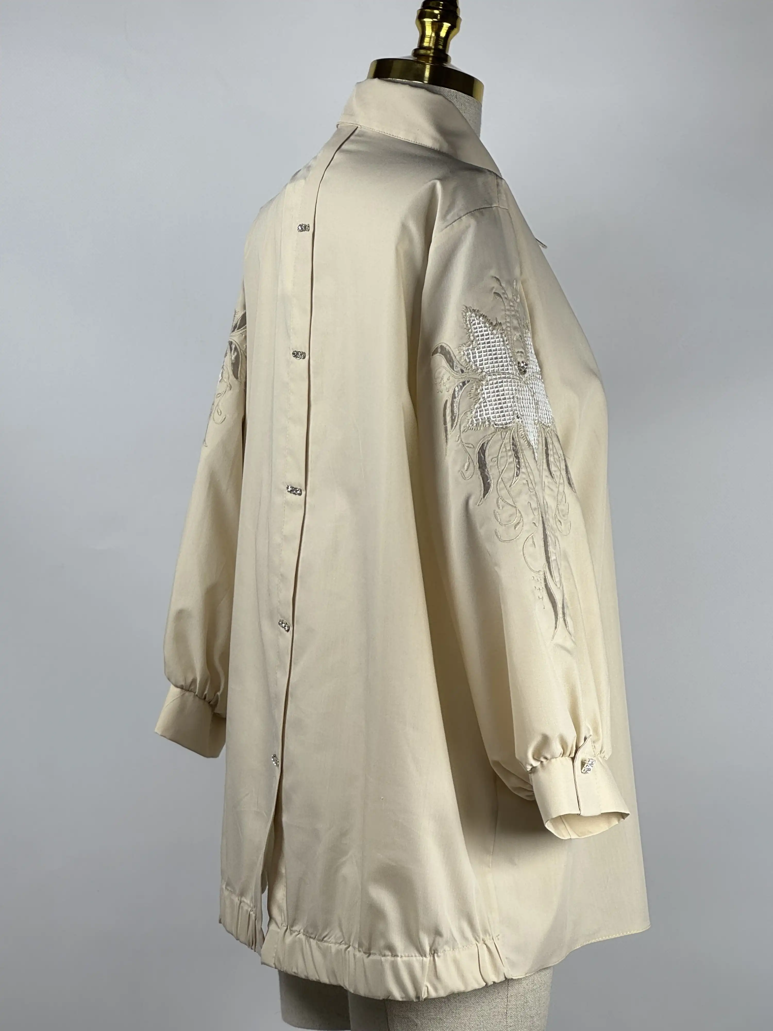 MY312 Bej Renk Kolları Nakışlı Taşlı Tunik