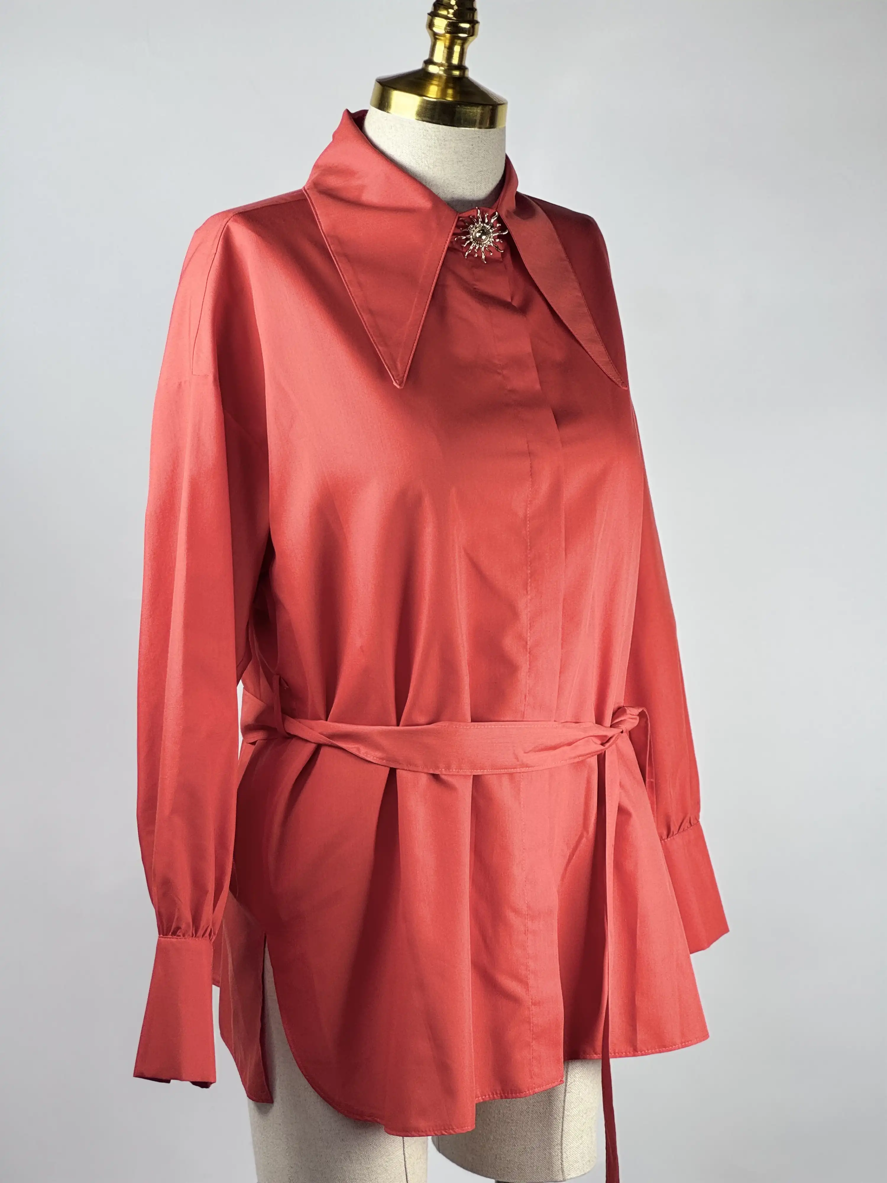 MY312 Mercan Renk Yaka Detaylı Gömlek