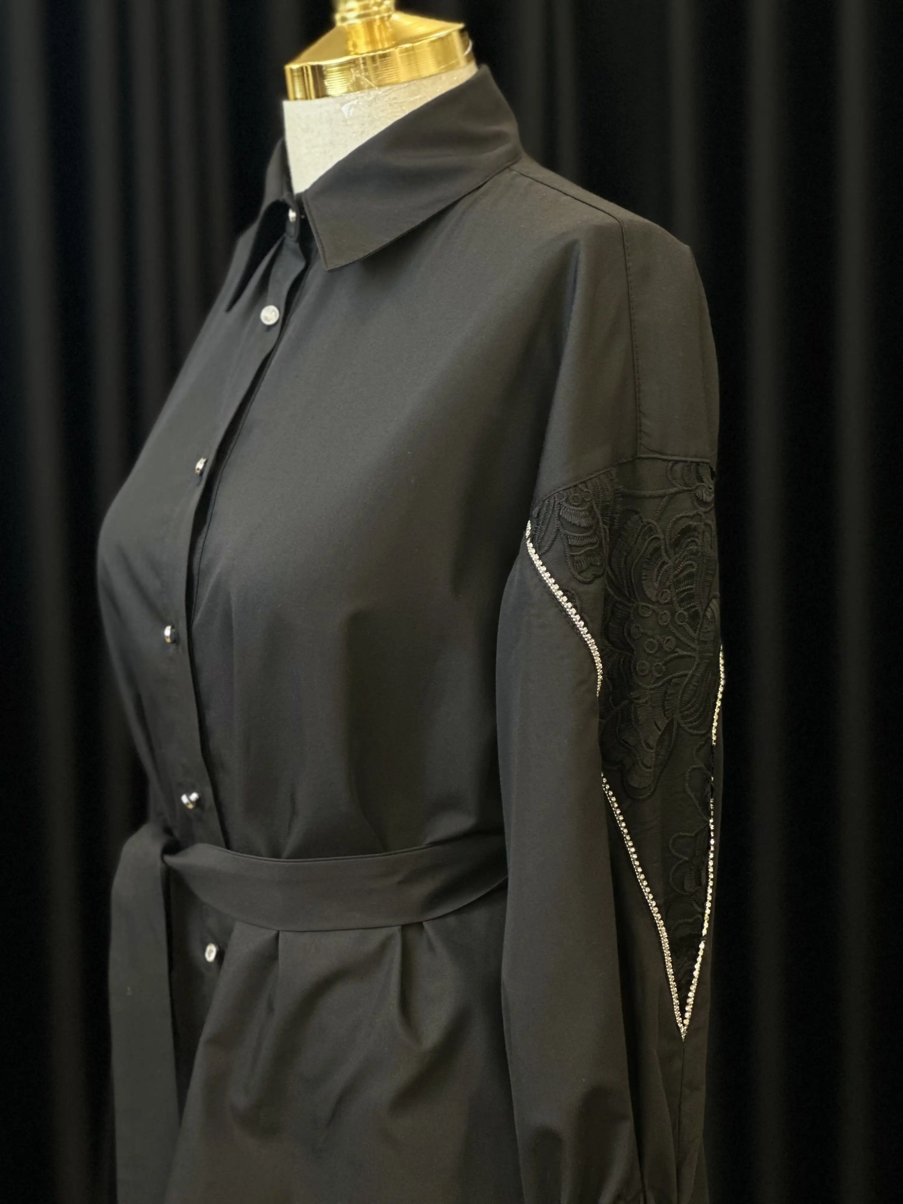 Birbirinden şık detaylarla tasarlanan MY312 Siyah Renk Kolları Dantelli Tunik ile stilinizi ön plana çıkarın.