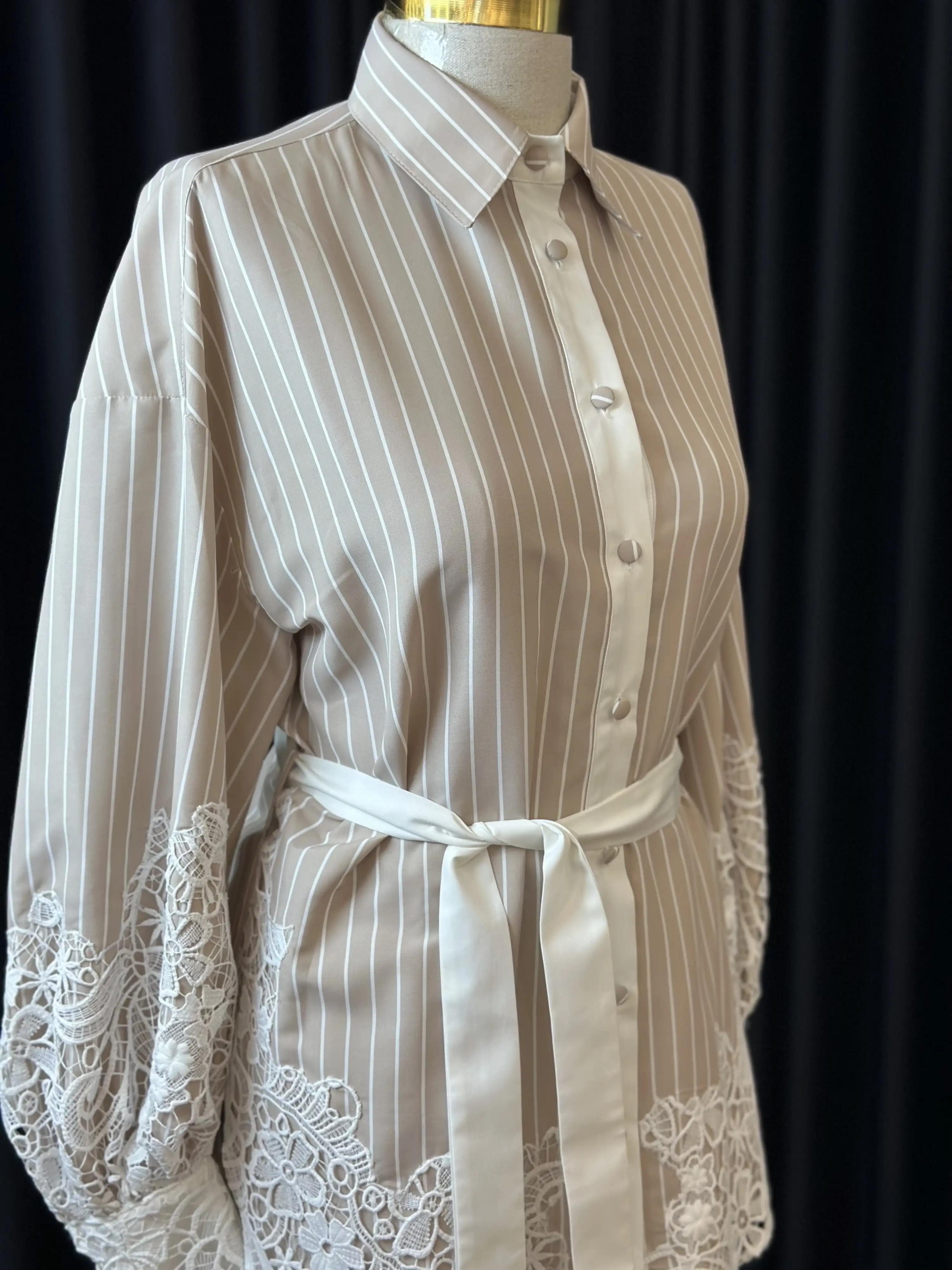 MY312 Bej Renk Nakışlı Dantelli Tunik