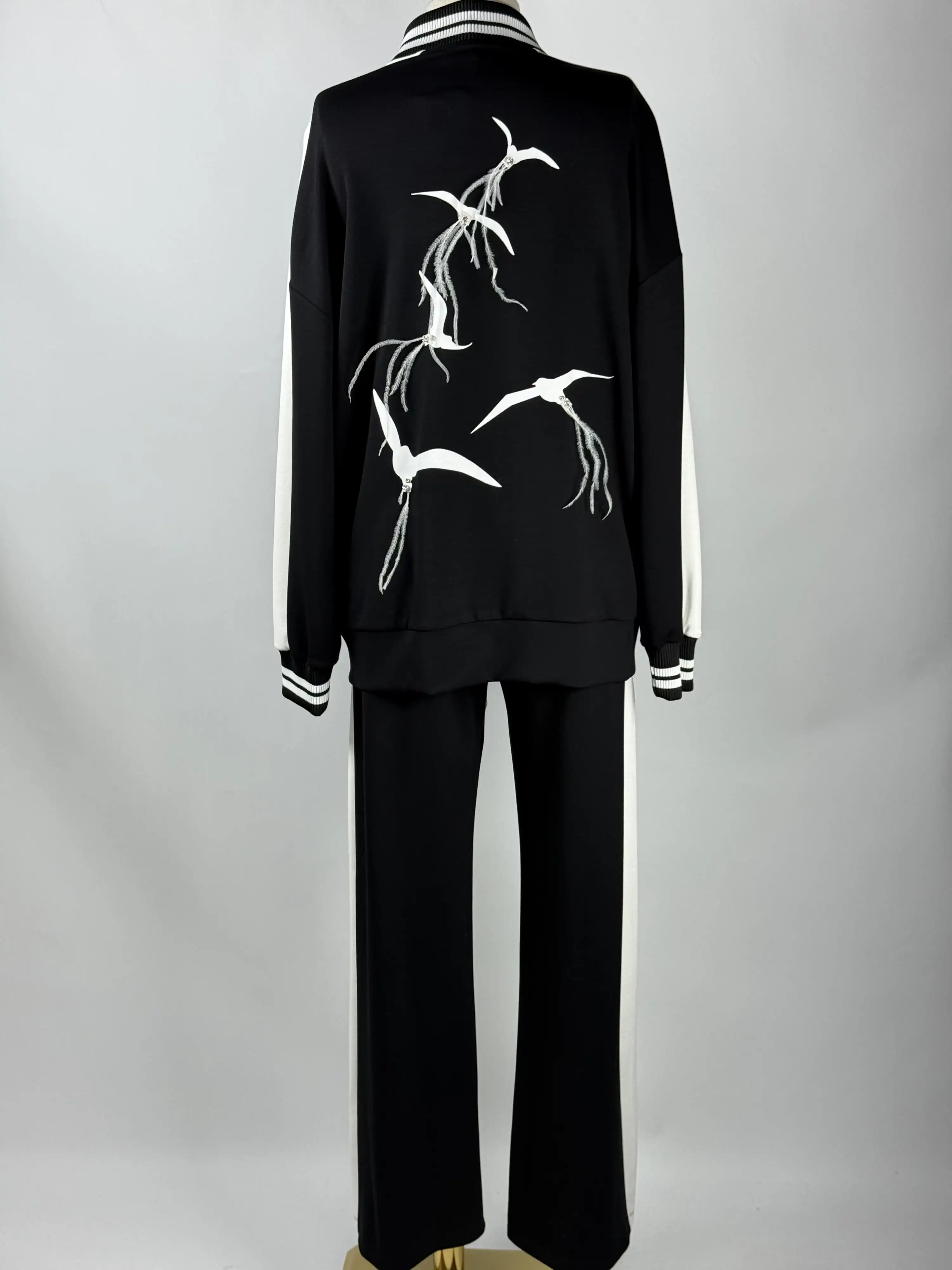 MY312 Siyah Renk Kuş Detaylı Takım, hem şık hem de rahat bir görünüm sunar. Bu takım ile tarzınızı konuşturabilir, özgün ve trend bir görünüme sahip olabilirsiniz.