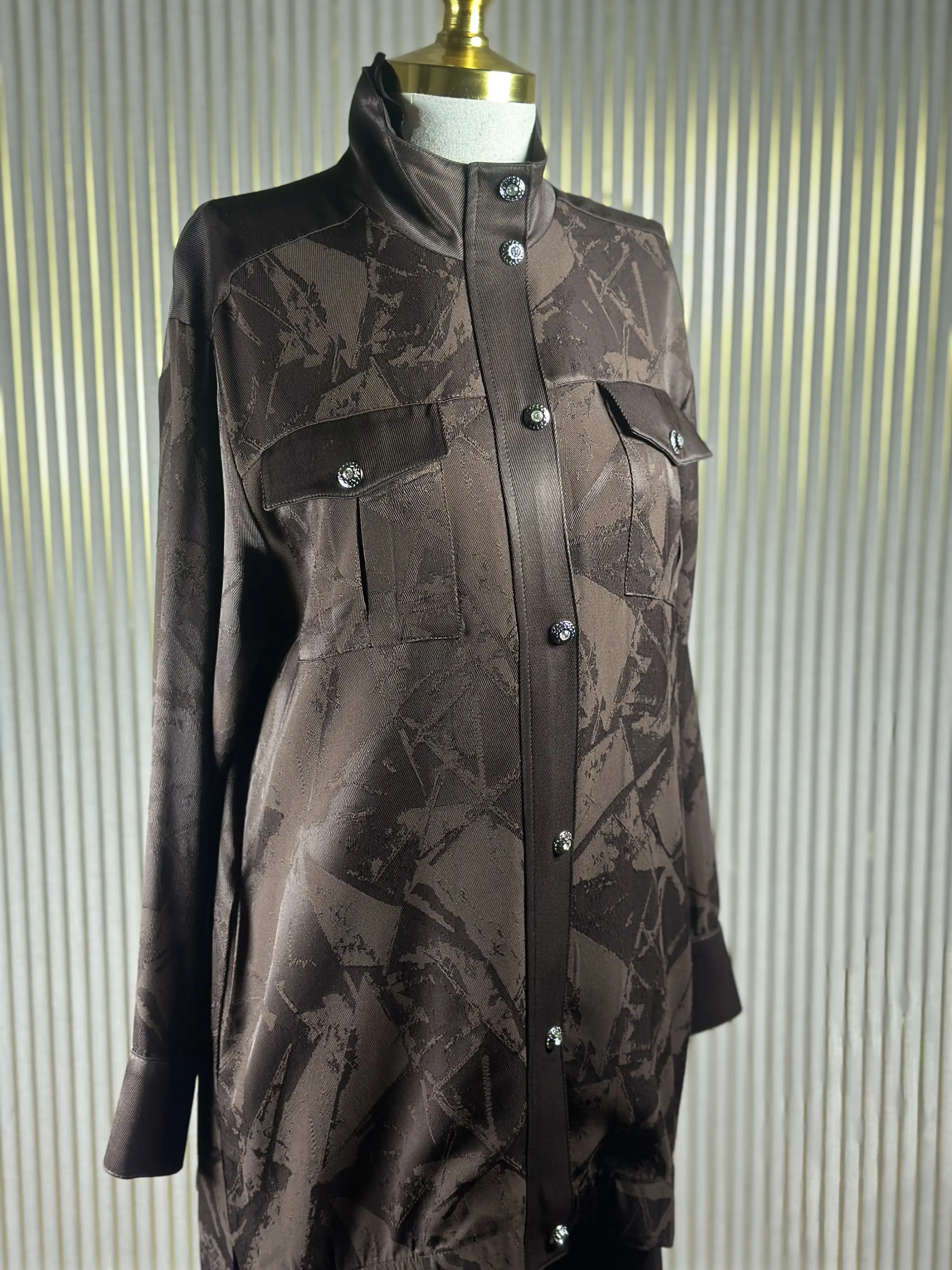 • Şıklığınızı tamamlayacak MY312 Kahve Renk Çıtçıtlı Cepli Jakar Takım.