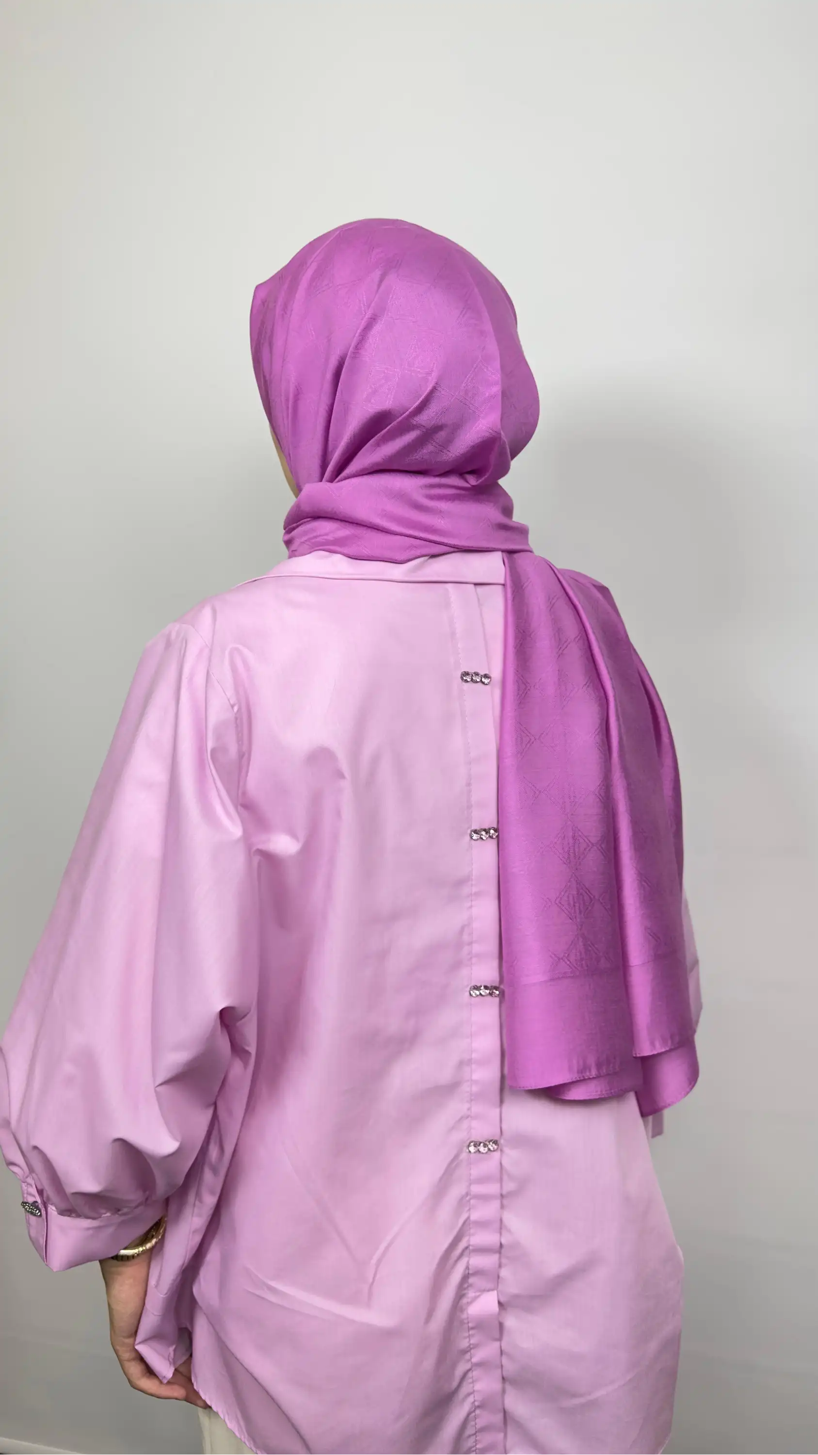 Gömleğin ön ve arka boyları arasındaki uyum, hareket özgürlüğü sağlarken; taş işlemeler zarif bir şıklık sunar. Tesettür giyiminde hem konfor hem de zarafeti bir arada arayan kadınlar için ideal bir seçimdir.