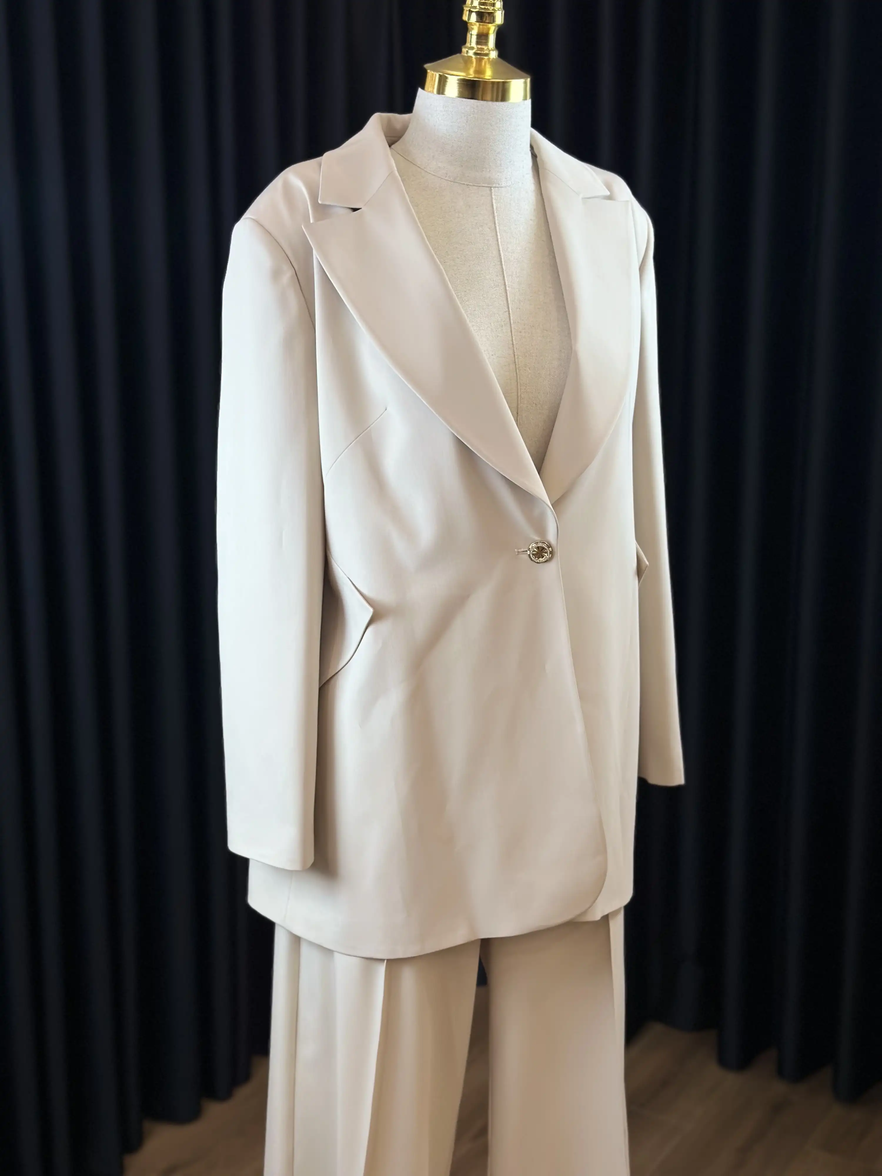 • NUSS Bej Renk Takım, şıklığı ve rahatlığı bir arada sunarak tarzınızı tamamlıyor.