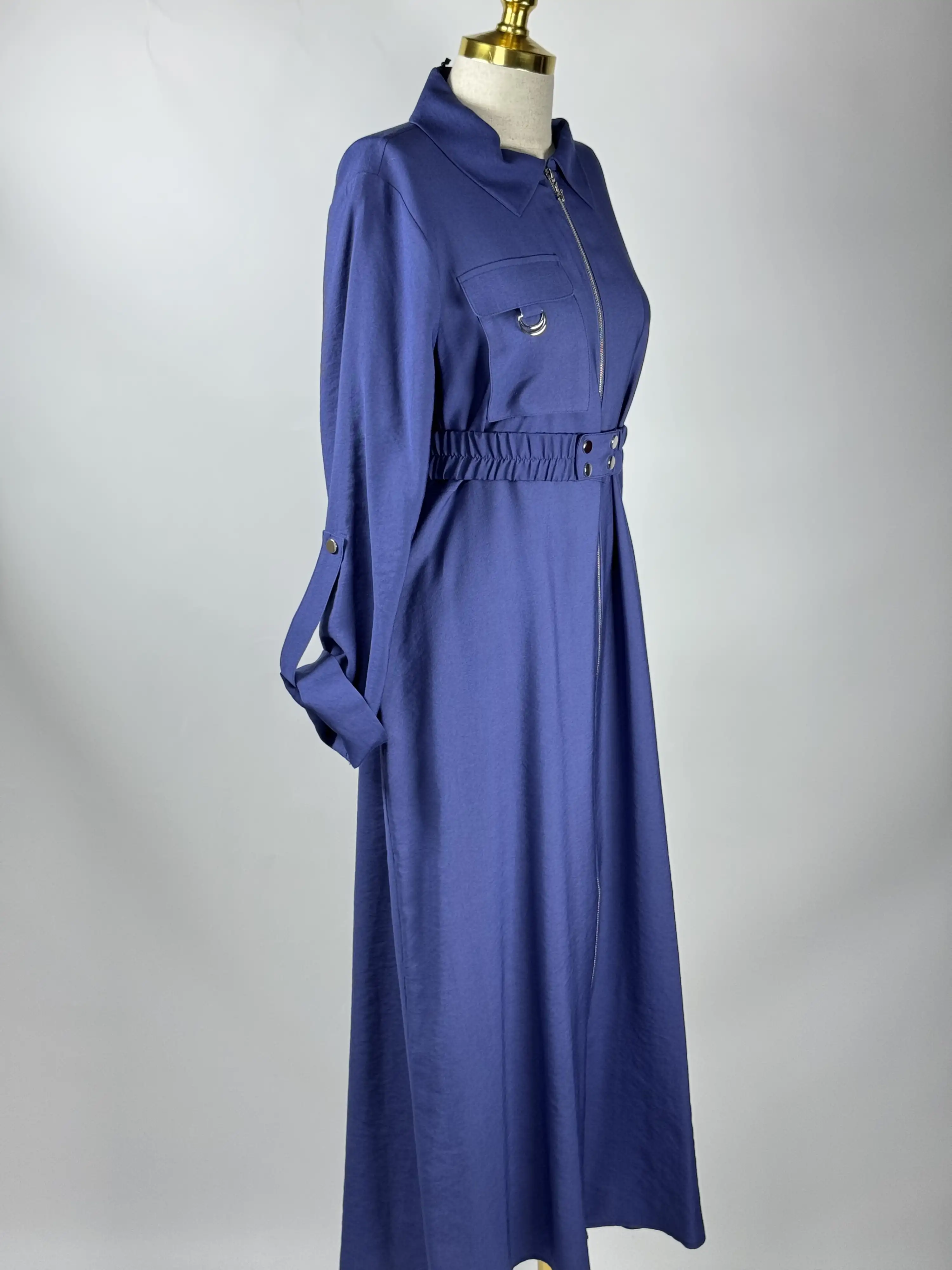 NUSS İndigo Renk Elbise, gardırobunuzdaki şıklığı ve zarafeti tamamlayacak şık bir seçenektir.