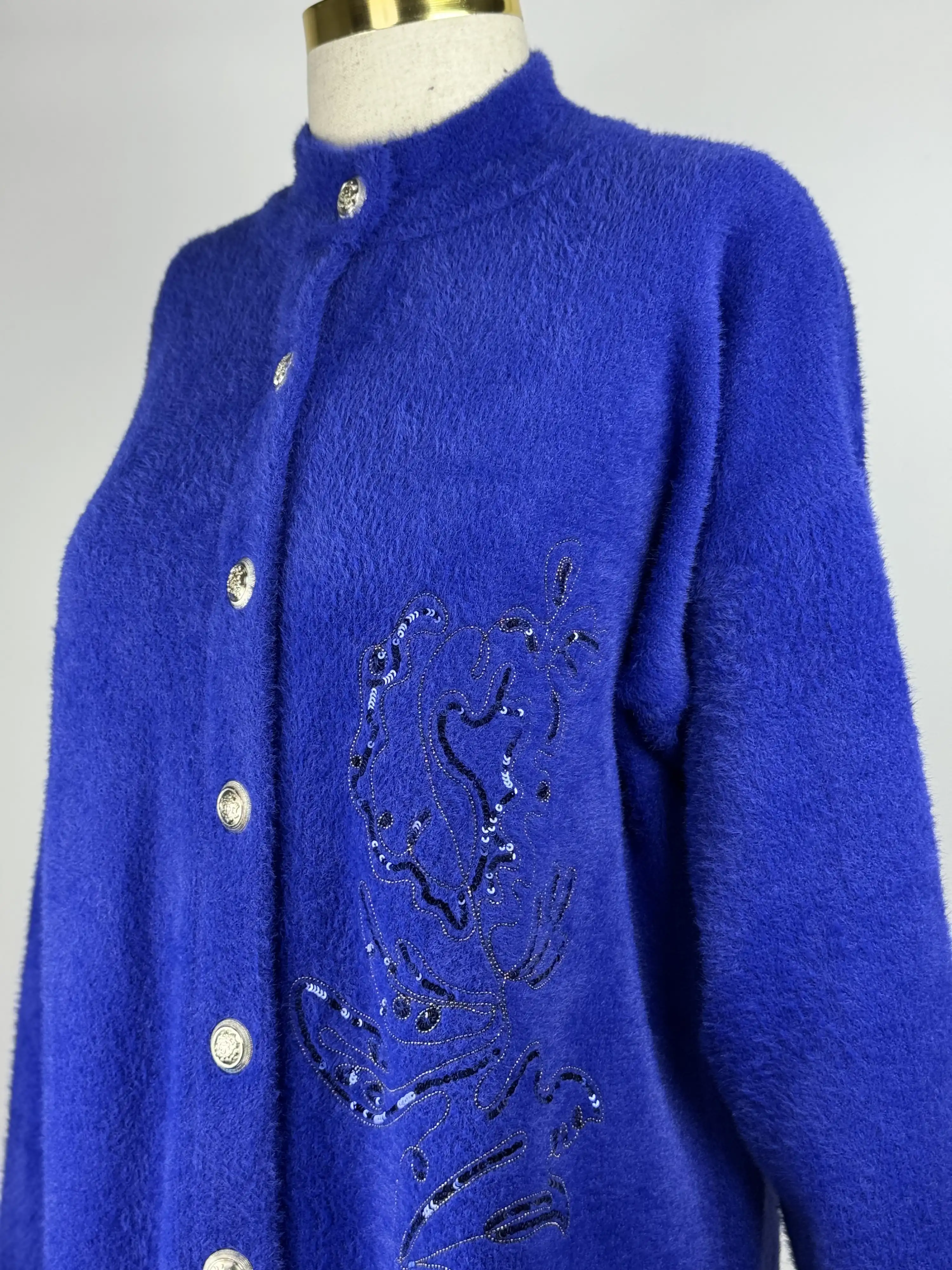 Angora kumaştan üretilmiş olan bu hırka, yumuşak dokusuyla teninize zarif bir dokunuş sağlar. Aynı zamanda saks rengiyle de şıklık ve zarafetinizi ön plana çıkarmanıza yardımcı olur.