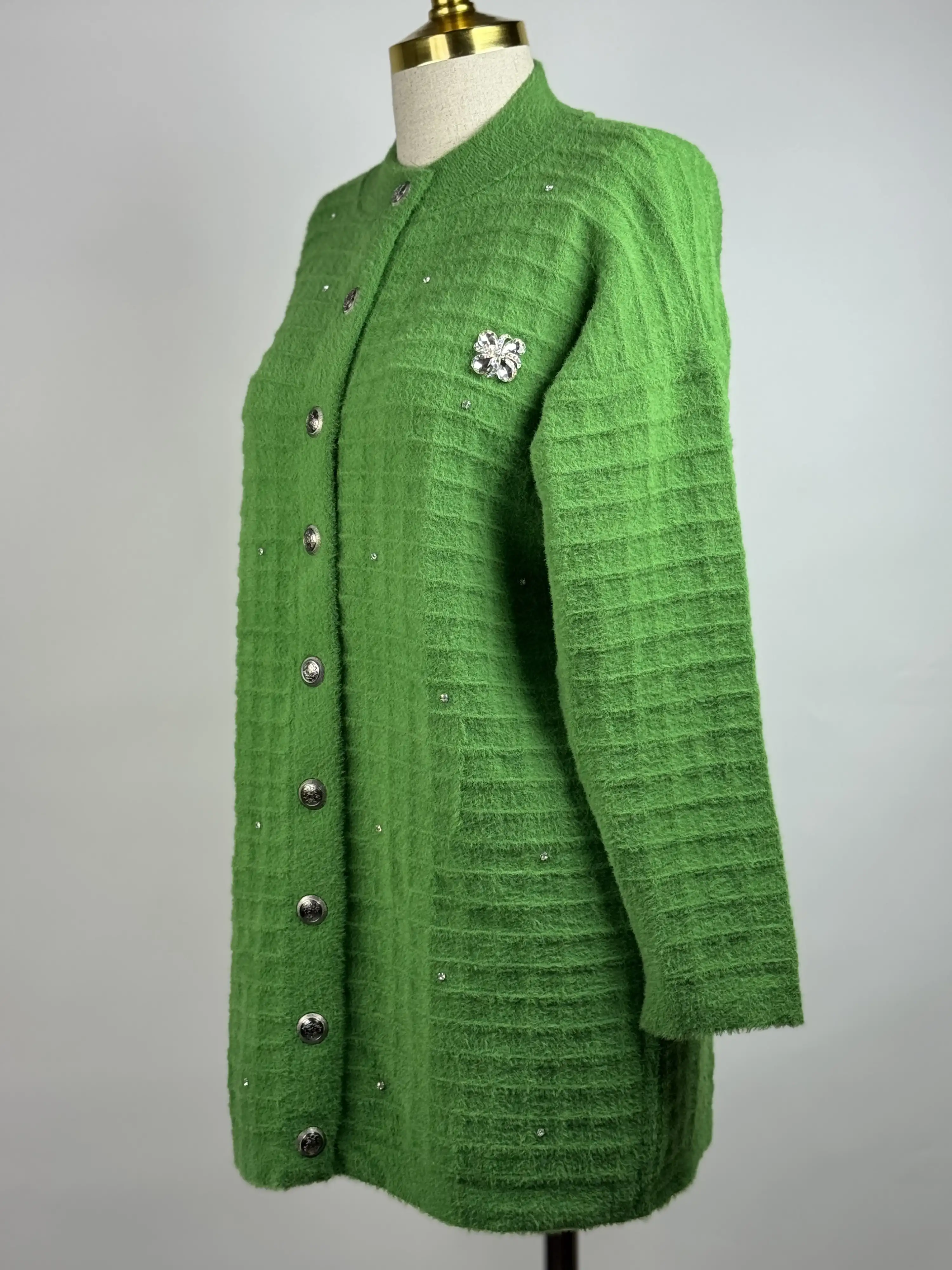 • NUSS Yeşil Renk Hırka, 1-2 beden şeklinde tasarlanmış, angora içeriğiyle hem şık hem de sıcak tutan bir seçenektir.