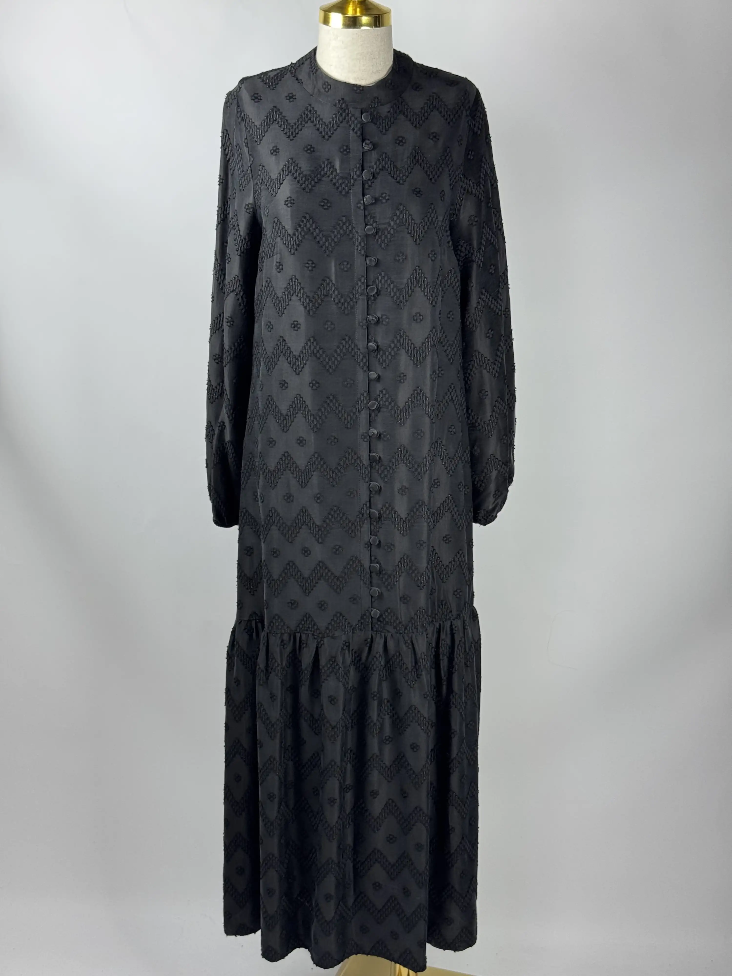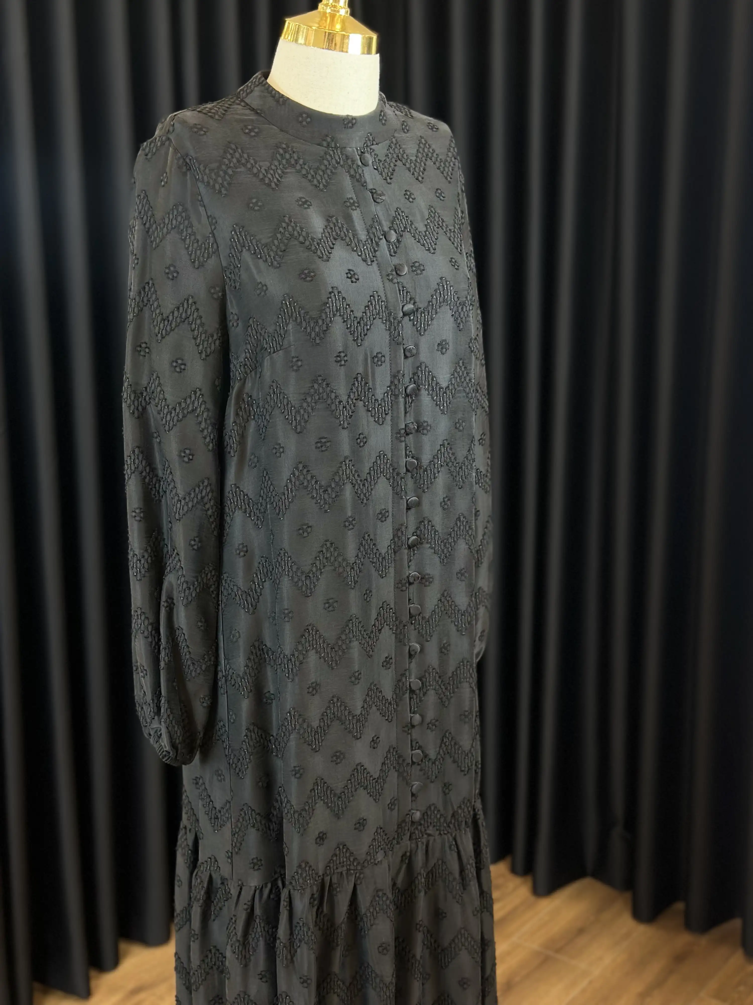 NUSS Siyah Renk Elbise, ipeksi dokusuyla sizi zarif bir görünüme kavuşturur.