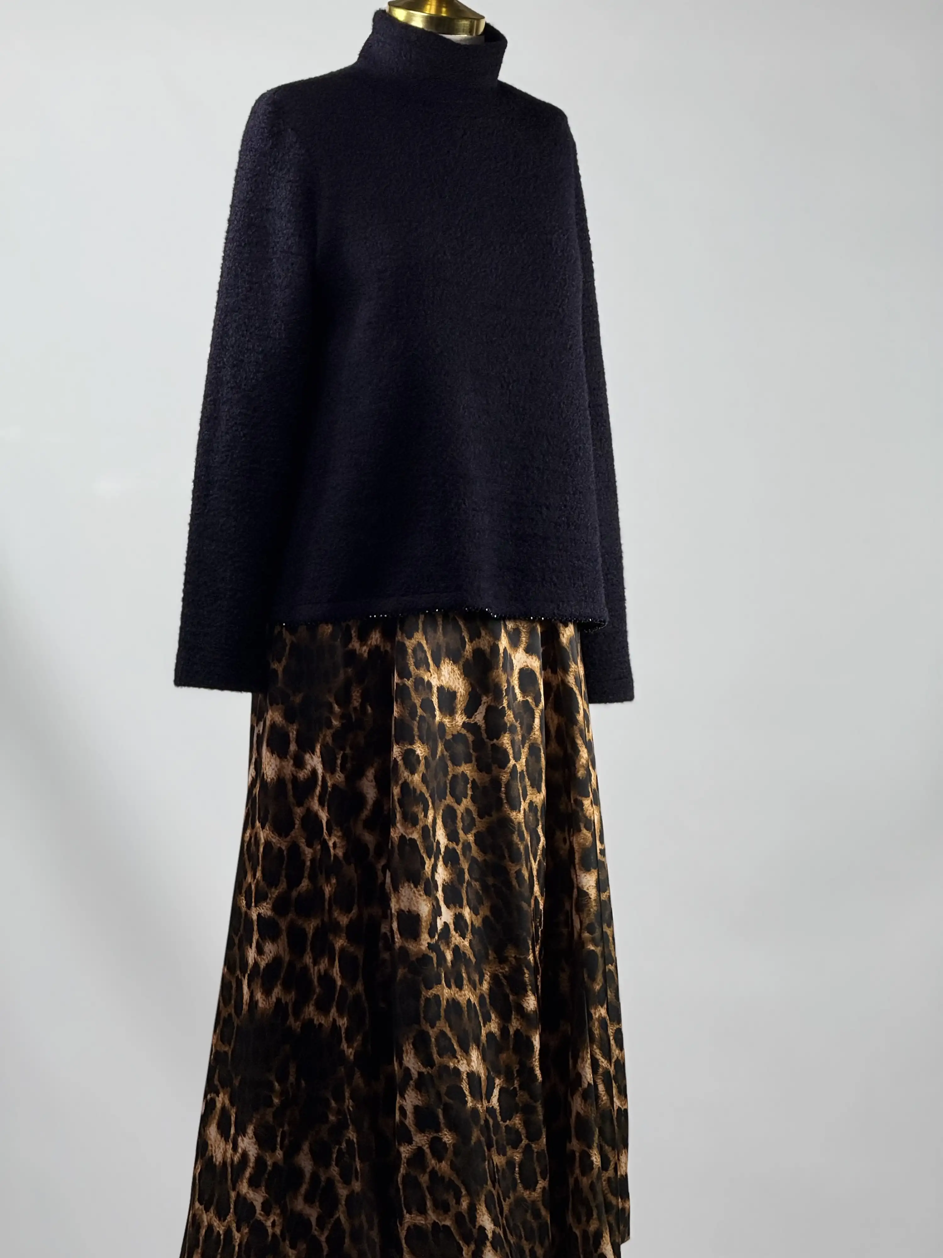 QUPRA Leopar Etekli Takım, şıklığı ve tarzı bir arada sunar. Leopar desenli eteği ve saten kaza ile tasarlanmış lacivert rengiyle öne çıkar. Bu takım ile hem günlük hayatta hem de özel davetlerde şıklığınızı konuşturabilirsiniz.