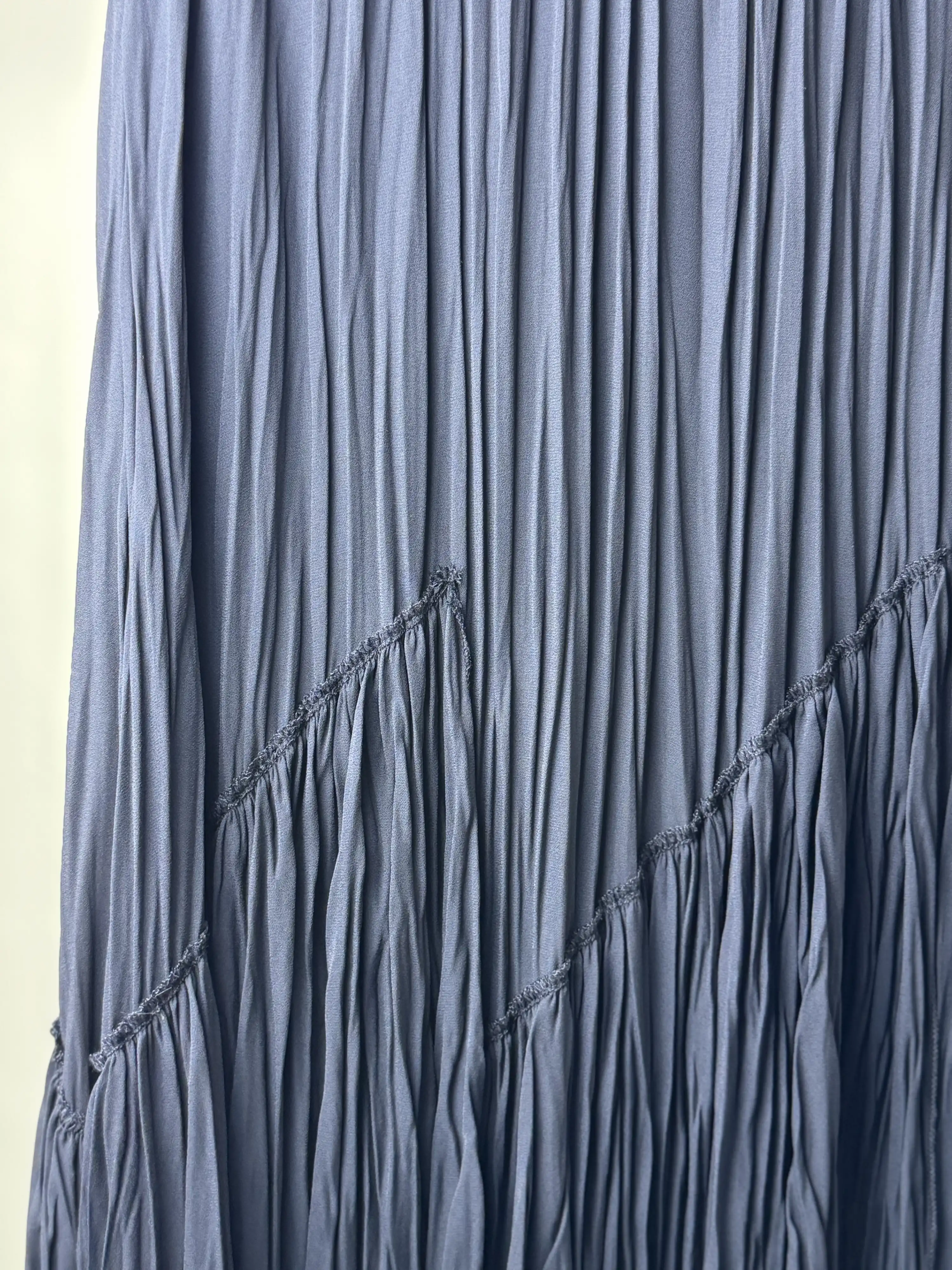 Sentez Lacivert Renk Viola Parçalı Kırıştırma Etek, şıklığı ve rahatlığı bir arada sunarak gardırobunuzun vazgeçilmez parçası olmaya aday!